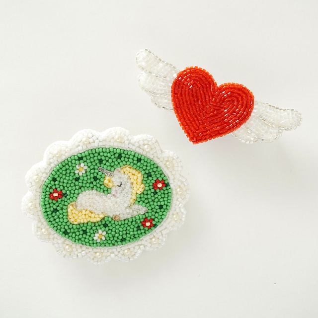 \HAPPY BAG/ ビーズ刺繍ブローチ2点セット(ユニコーン&エンジェルハート)