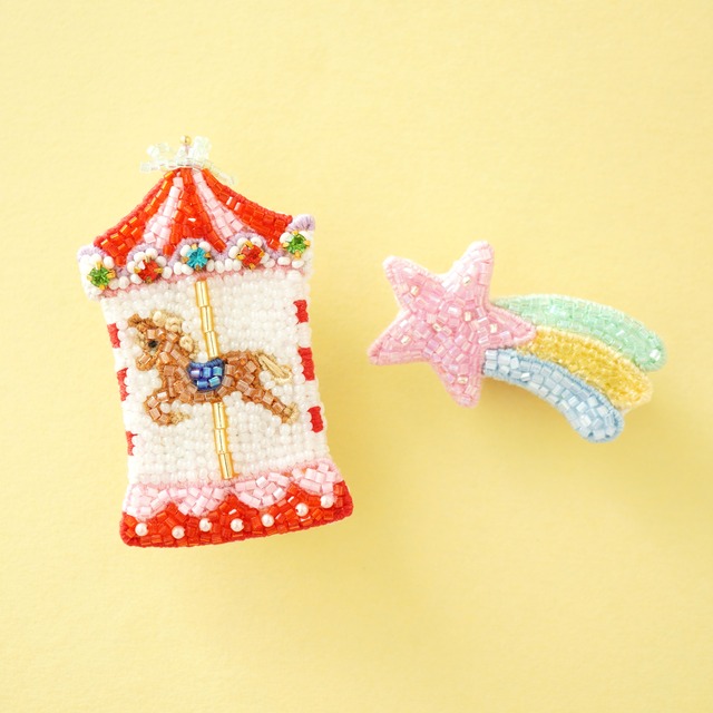 \HAPPY BAG/ビーズ刺繍ブローチ2個セット メリーゴーランドのブローチ・流れ星のブローチ
