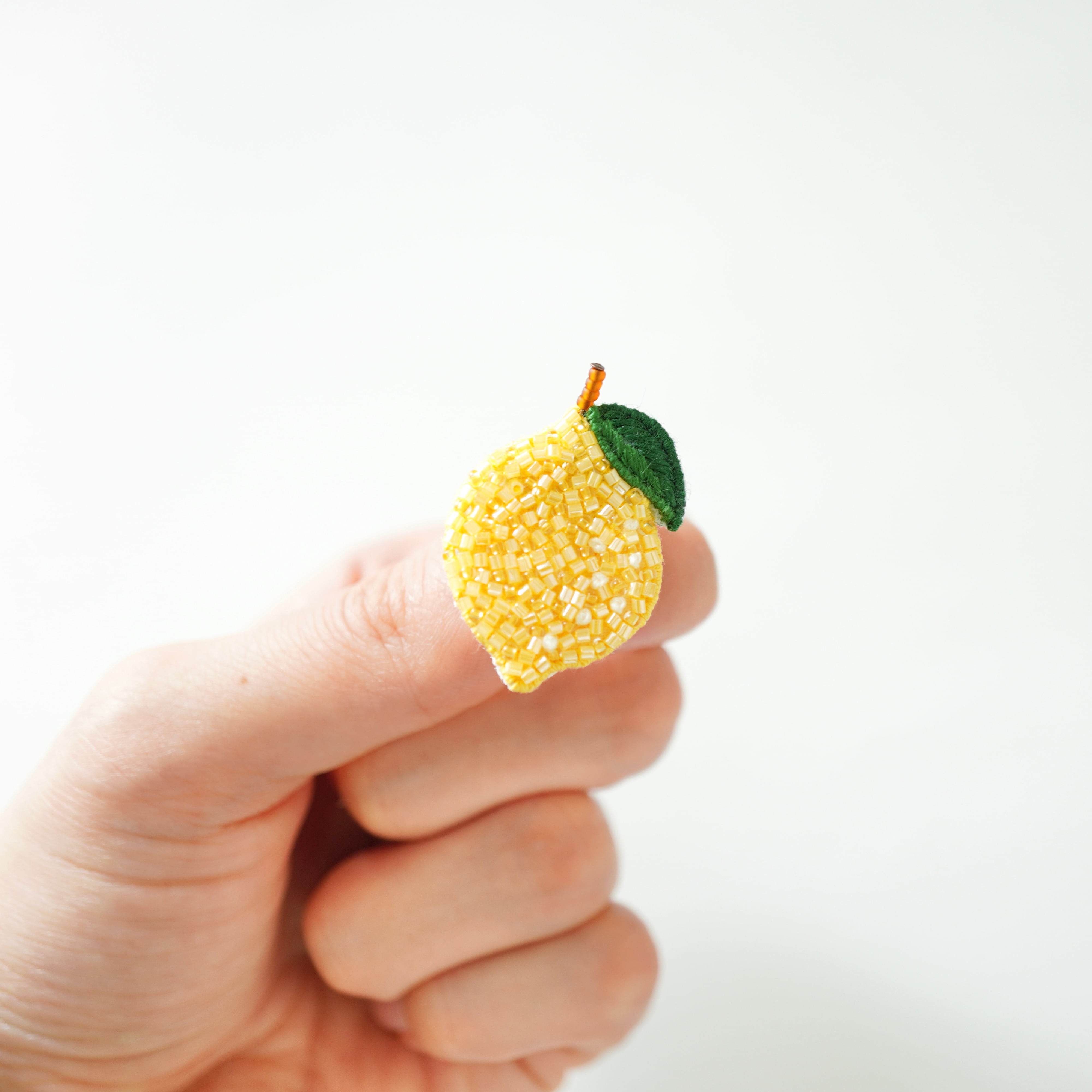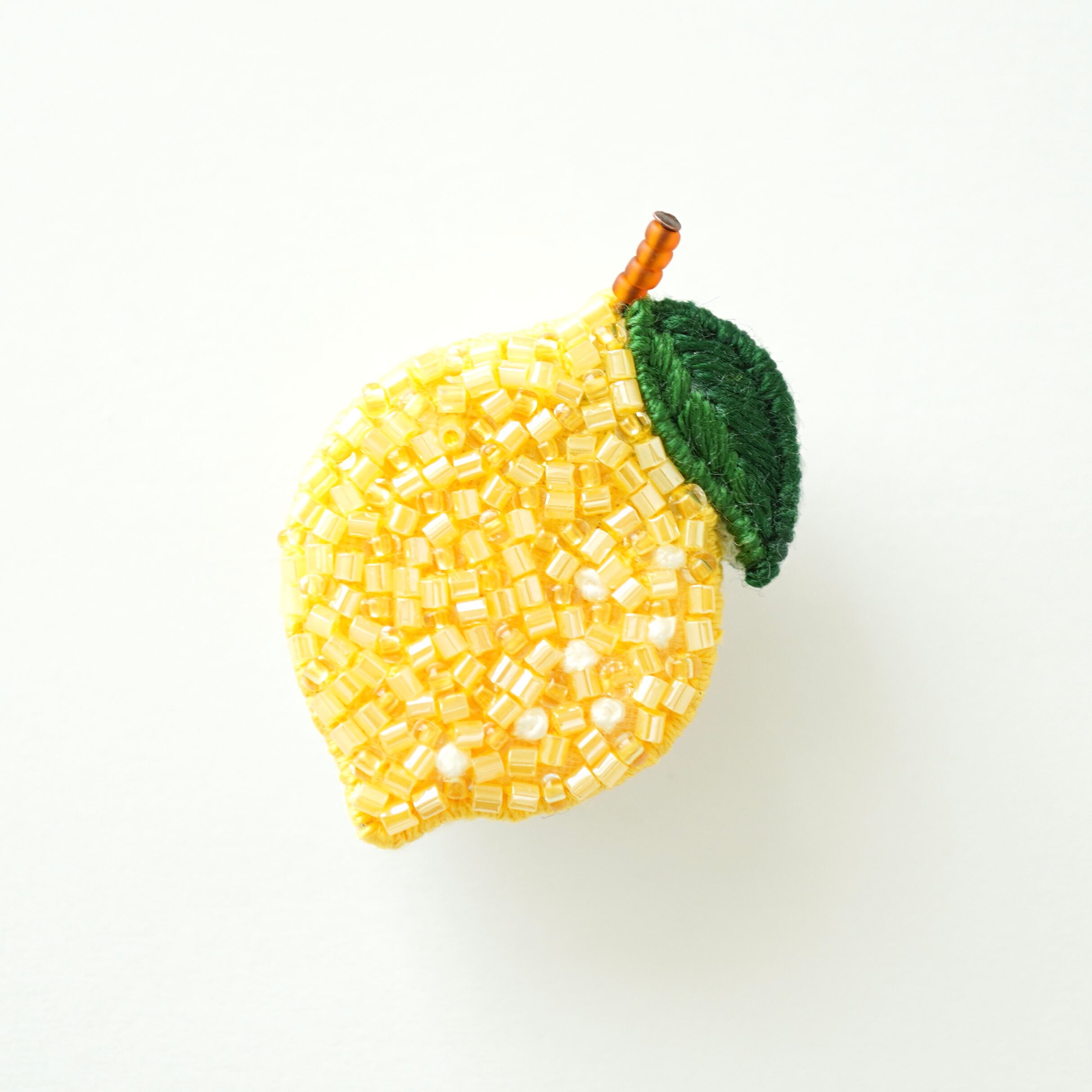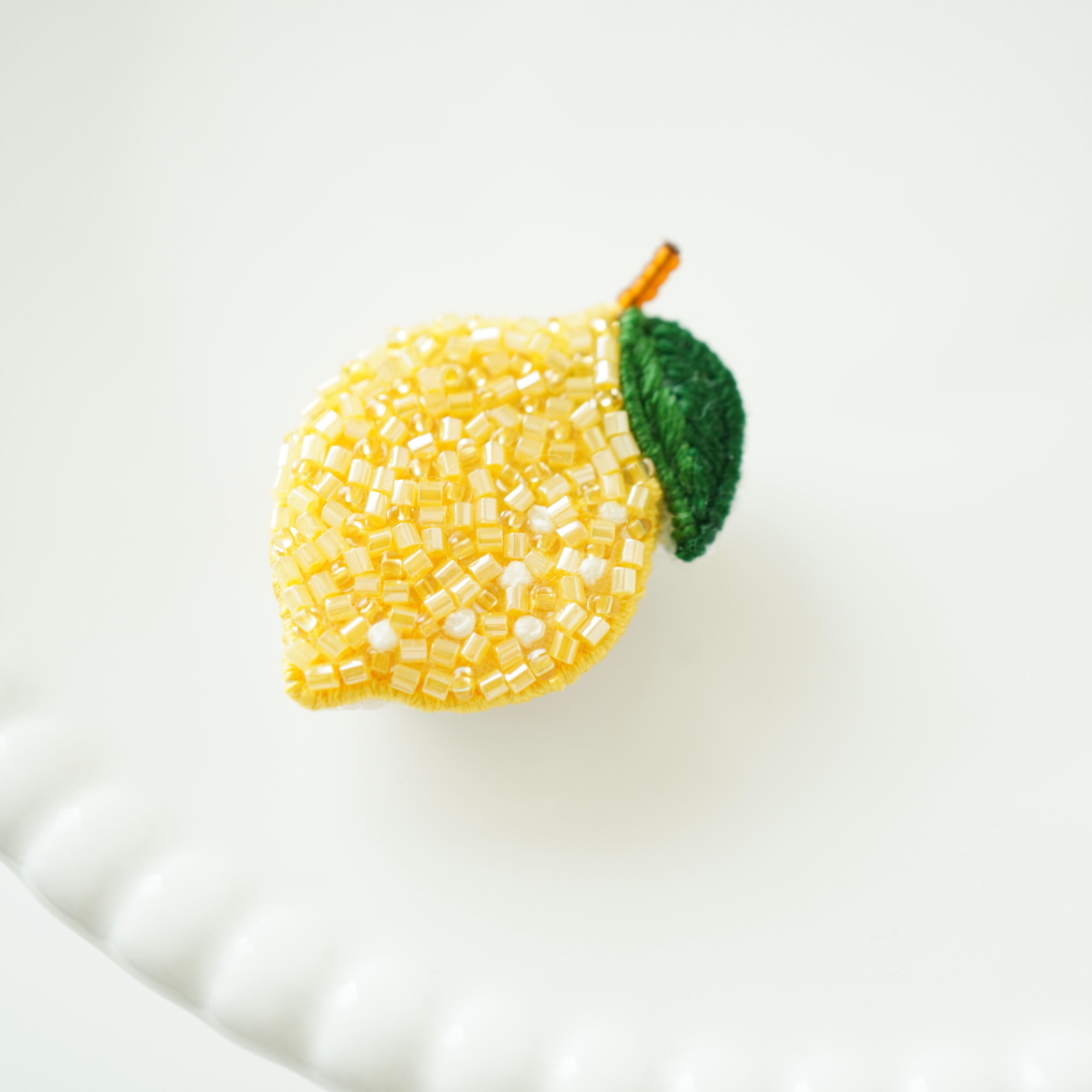 イエローのビーズとグリーンの刺繍糸の色合いが爽やかな夏らしいデザインとなっています。