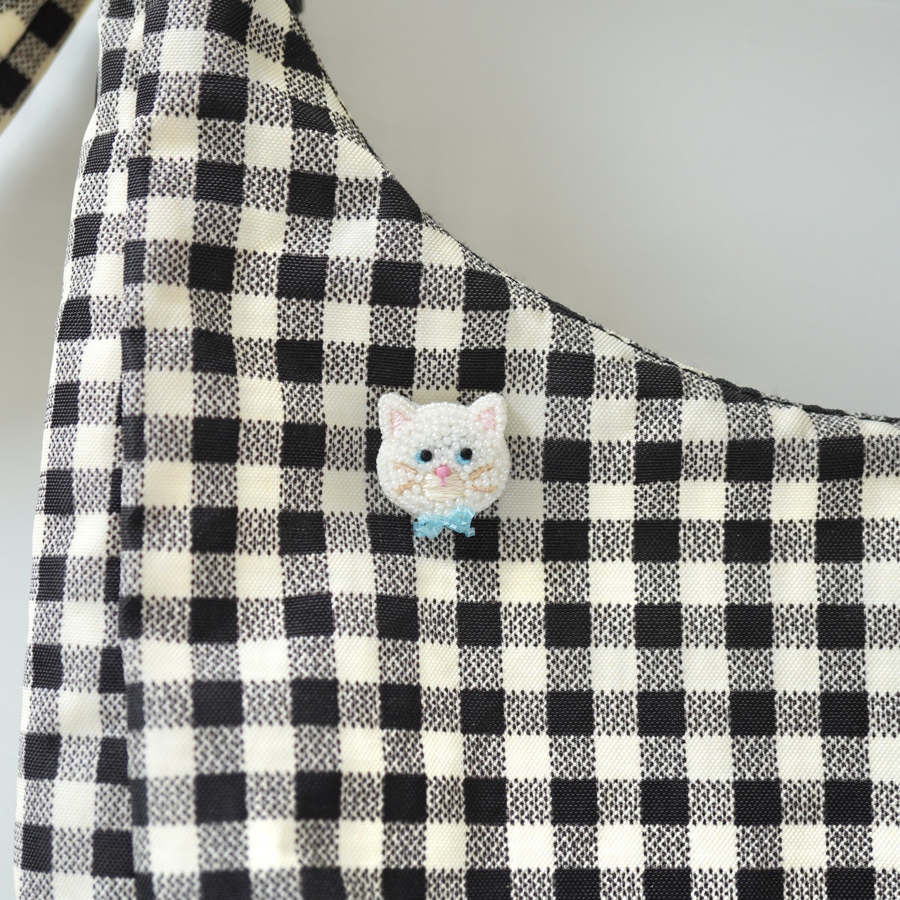ビーズ刺繍で制作した猫ちゃんピンバッジです。