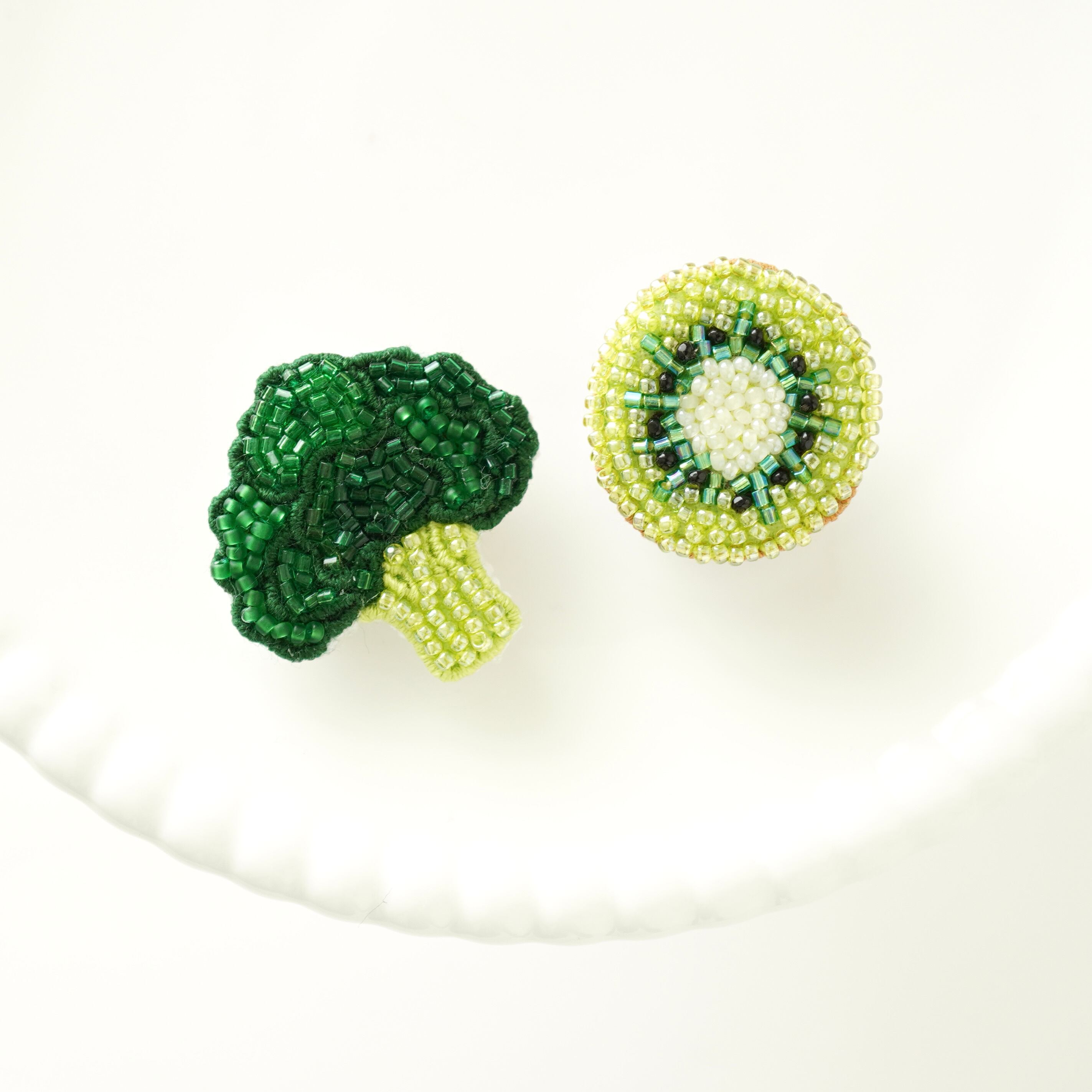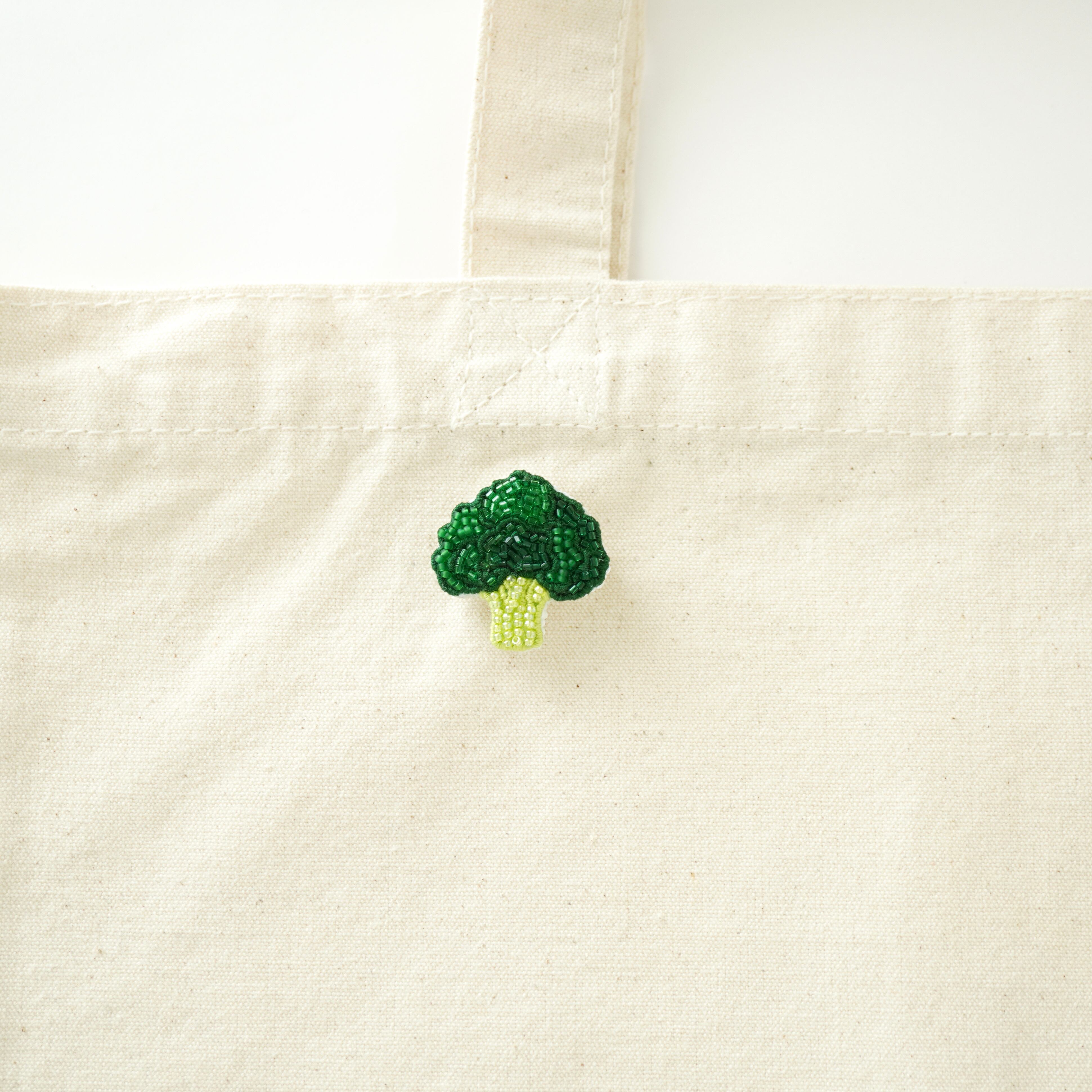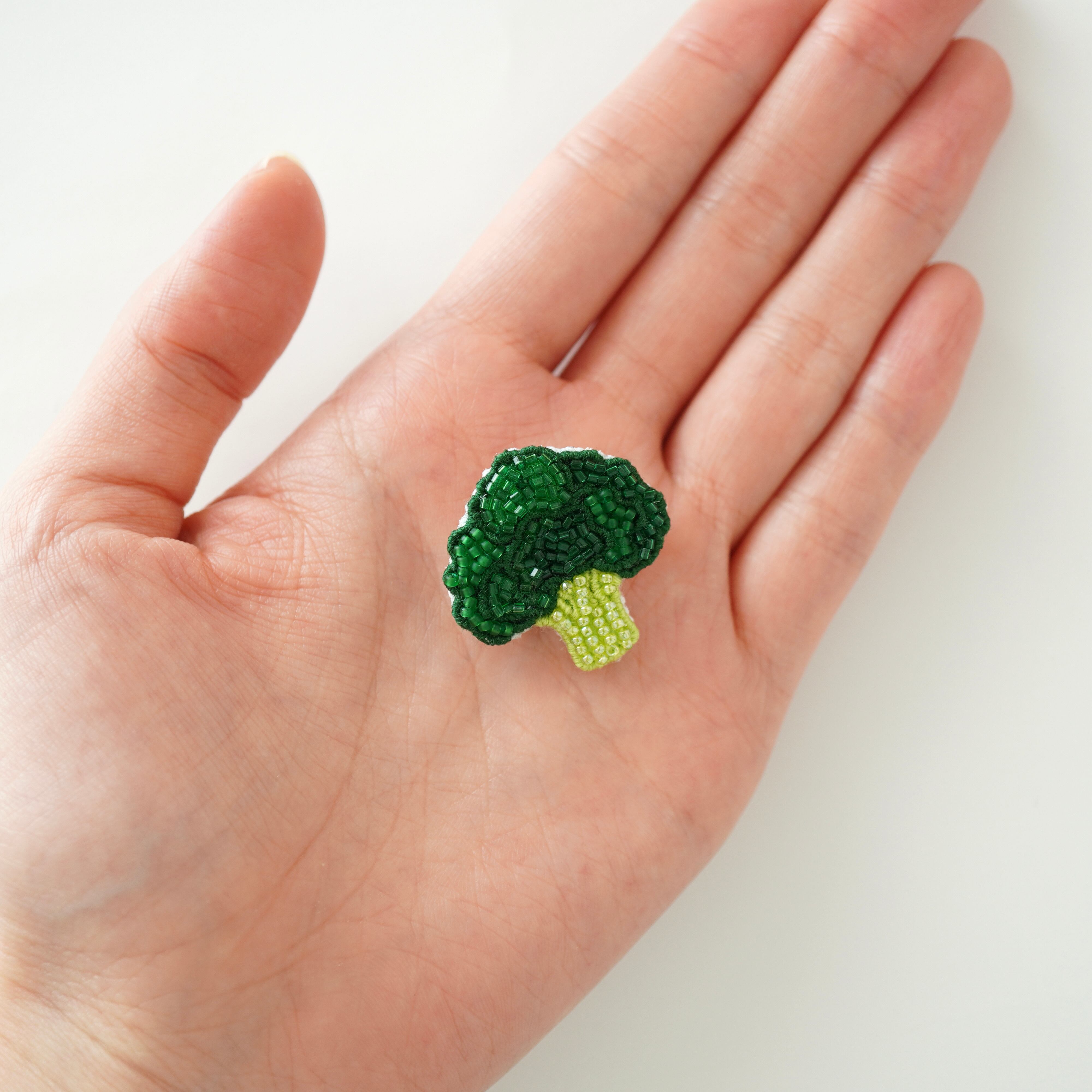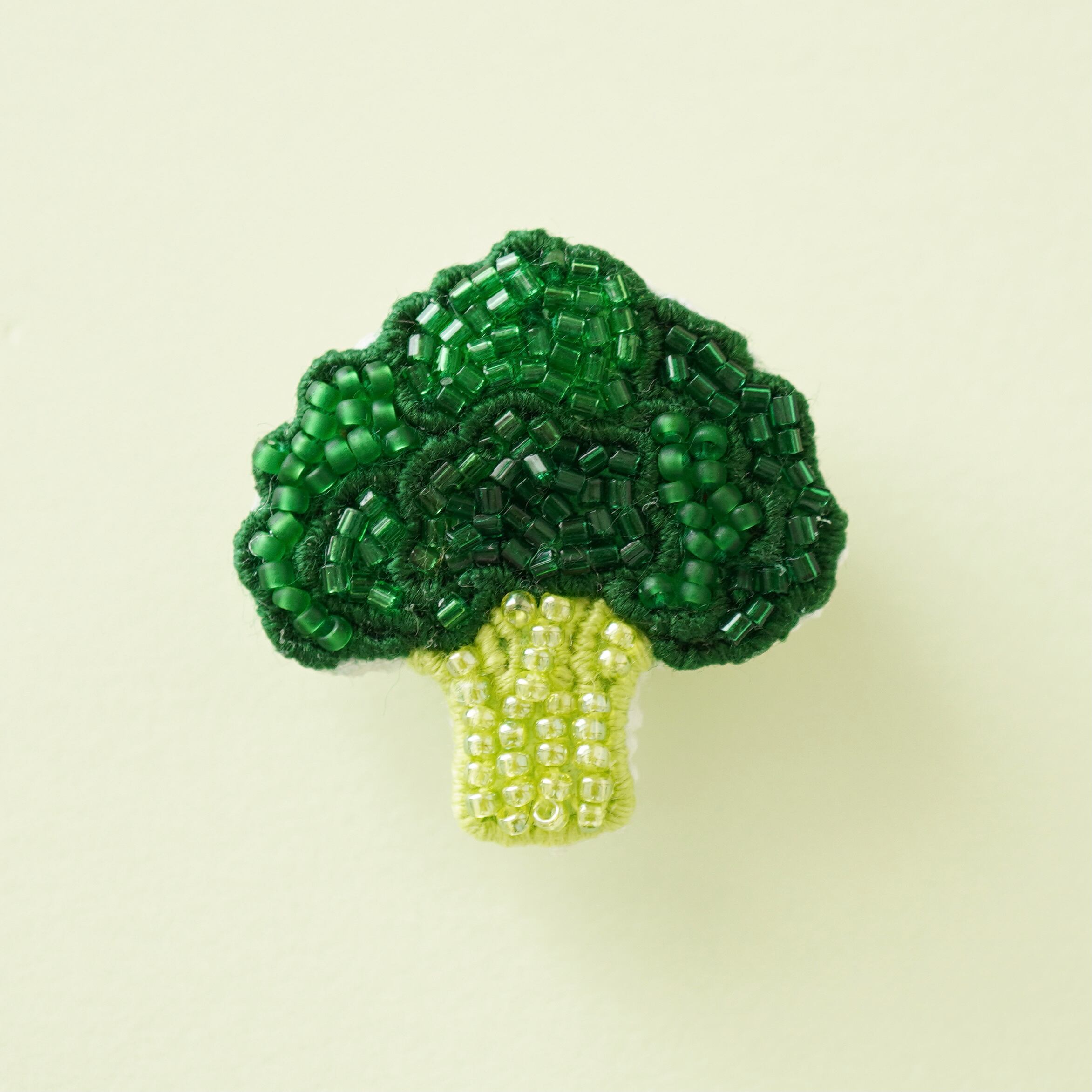 ブロッコリーのブローチ ビーズ刺繍ブローチ