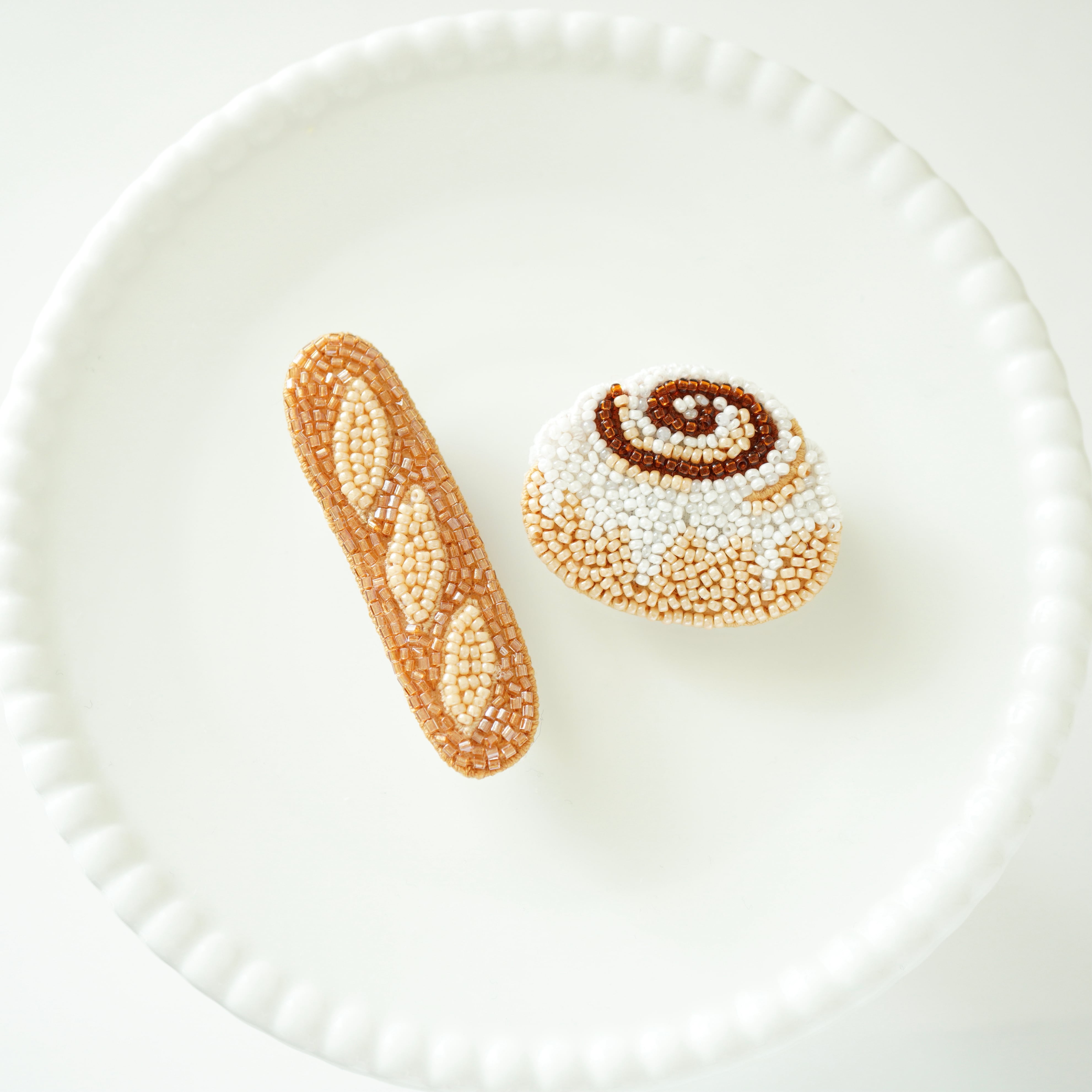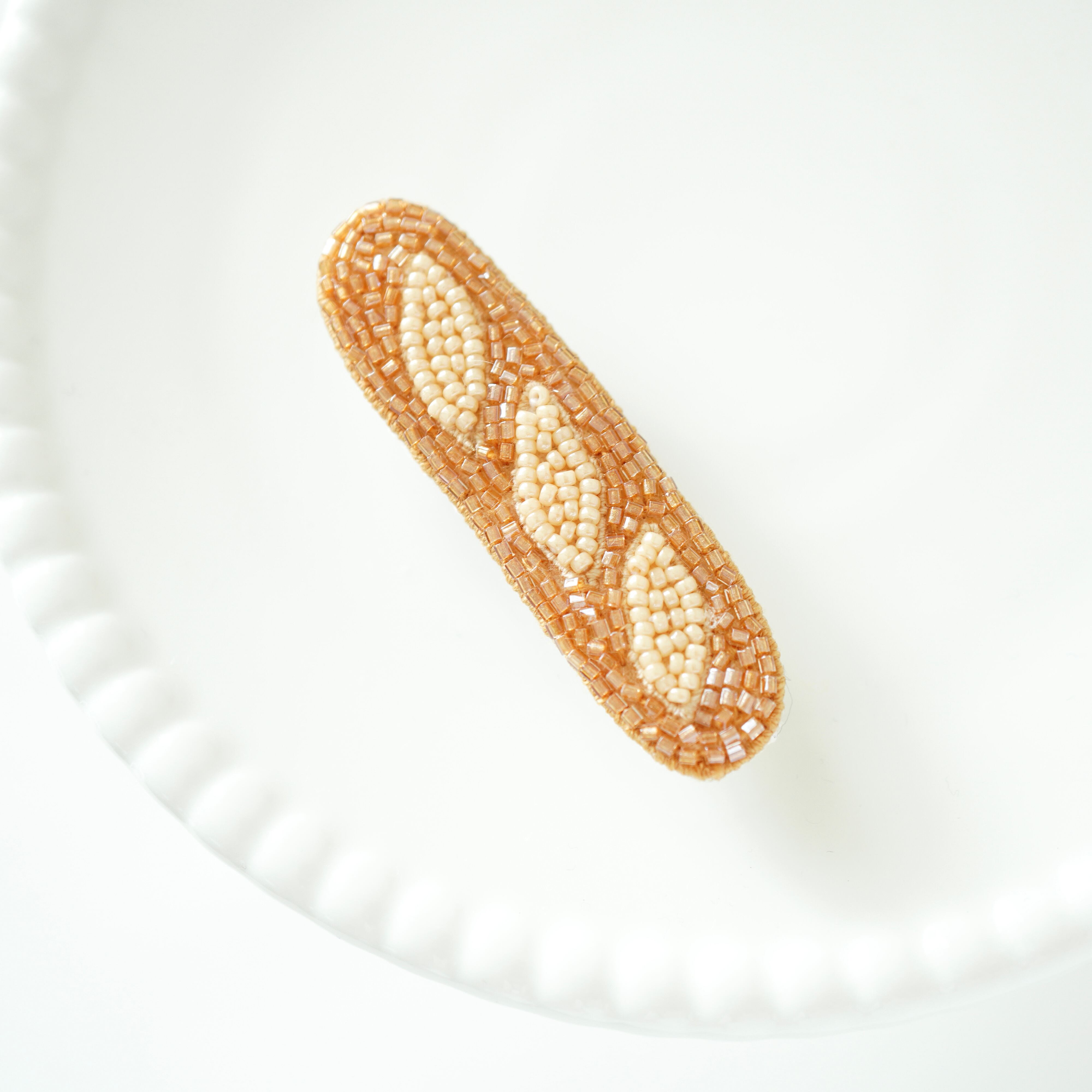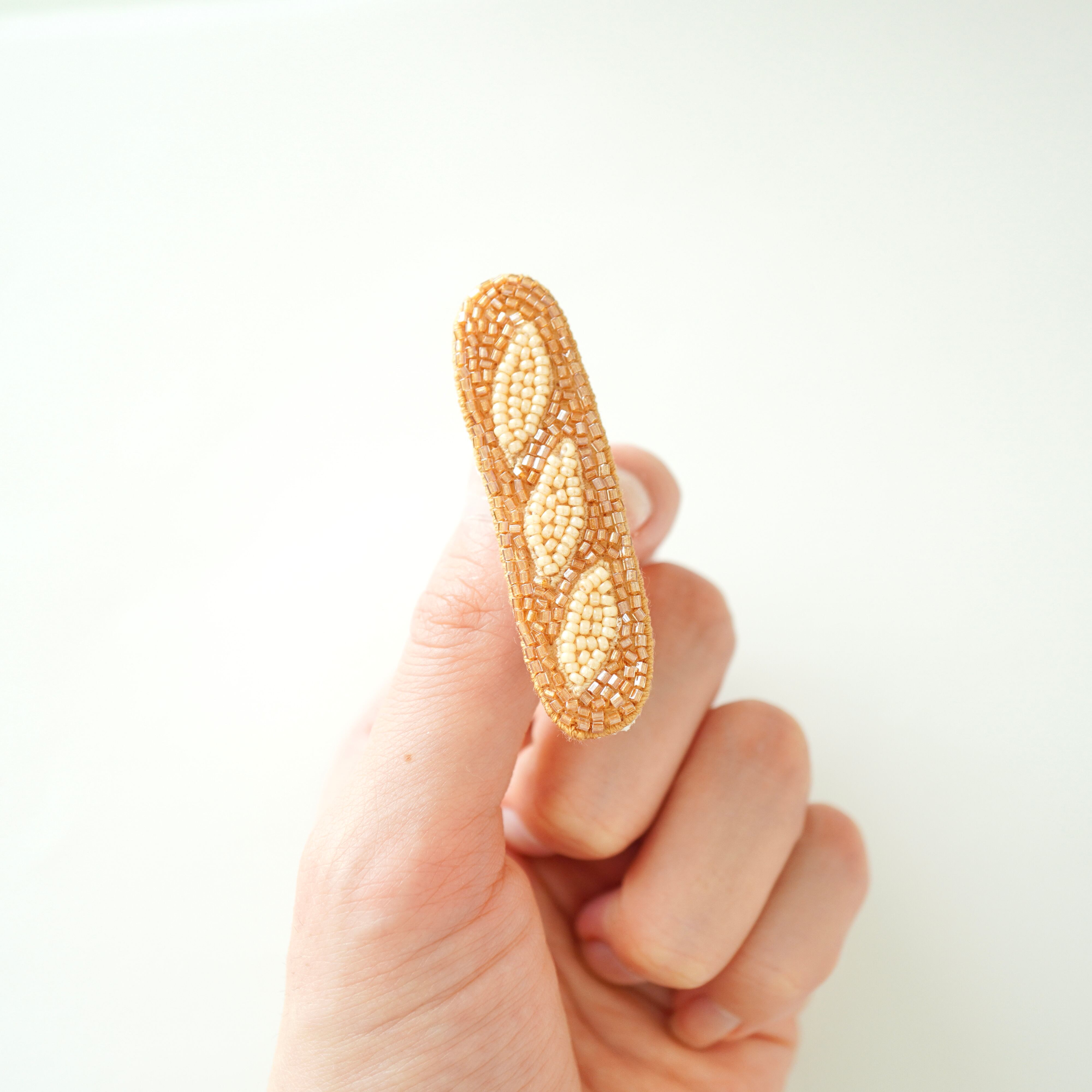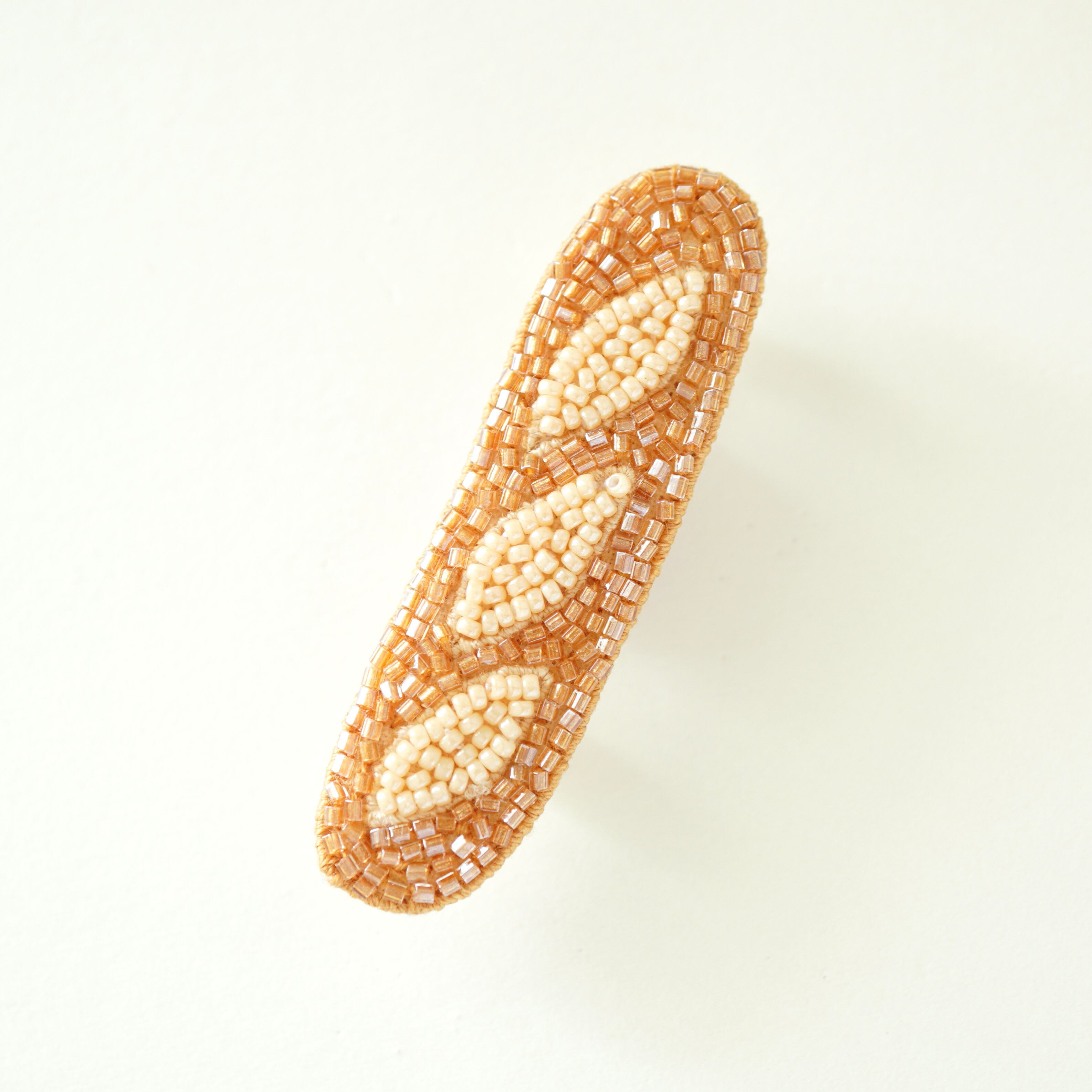 フランスパンのブローチ ビーズ刺繍ブローチ