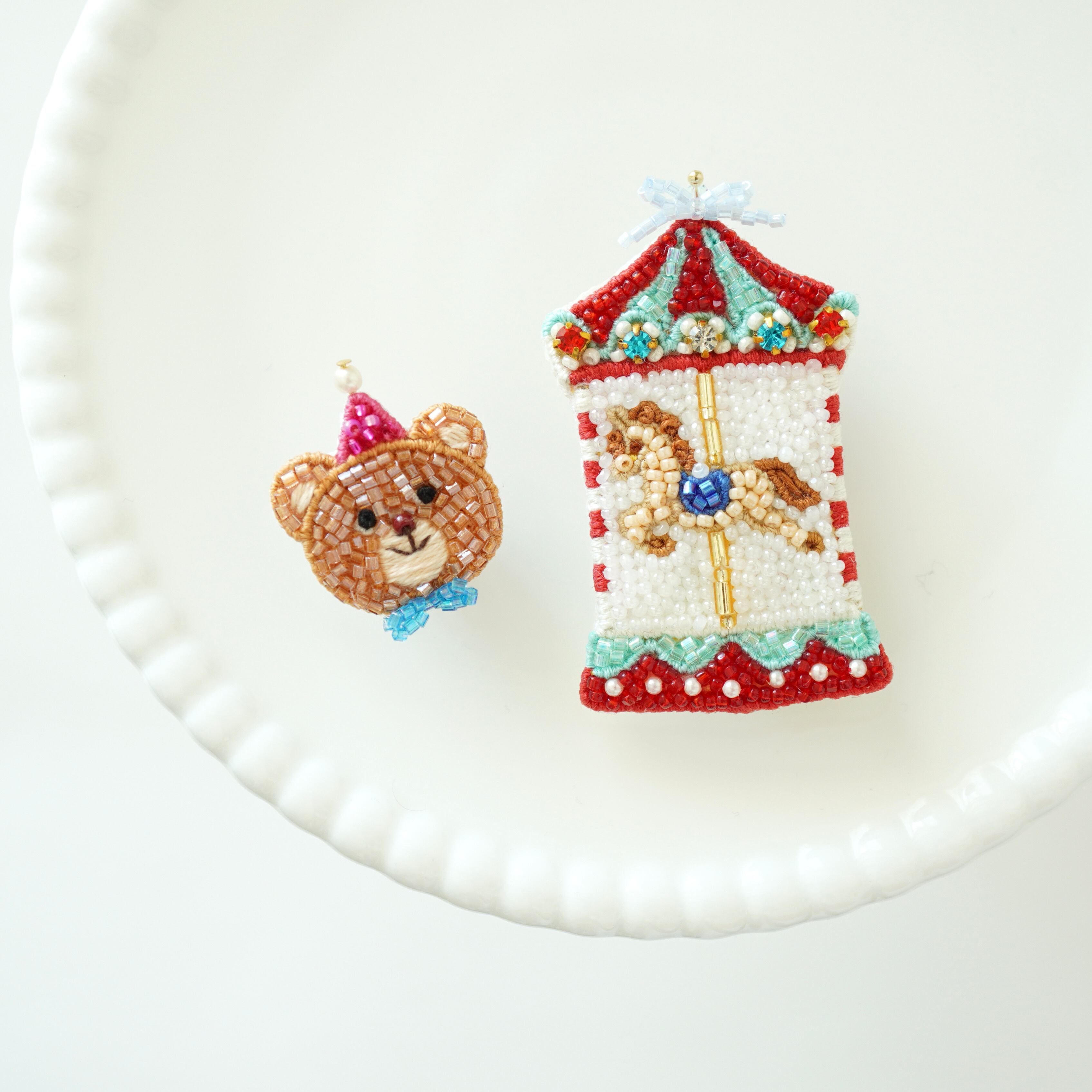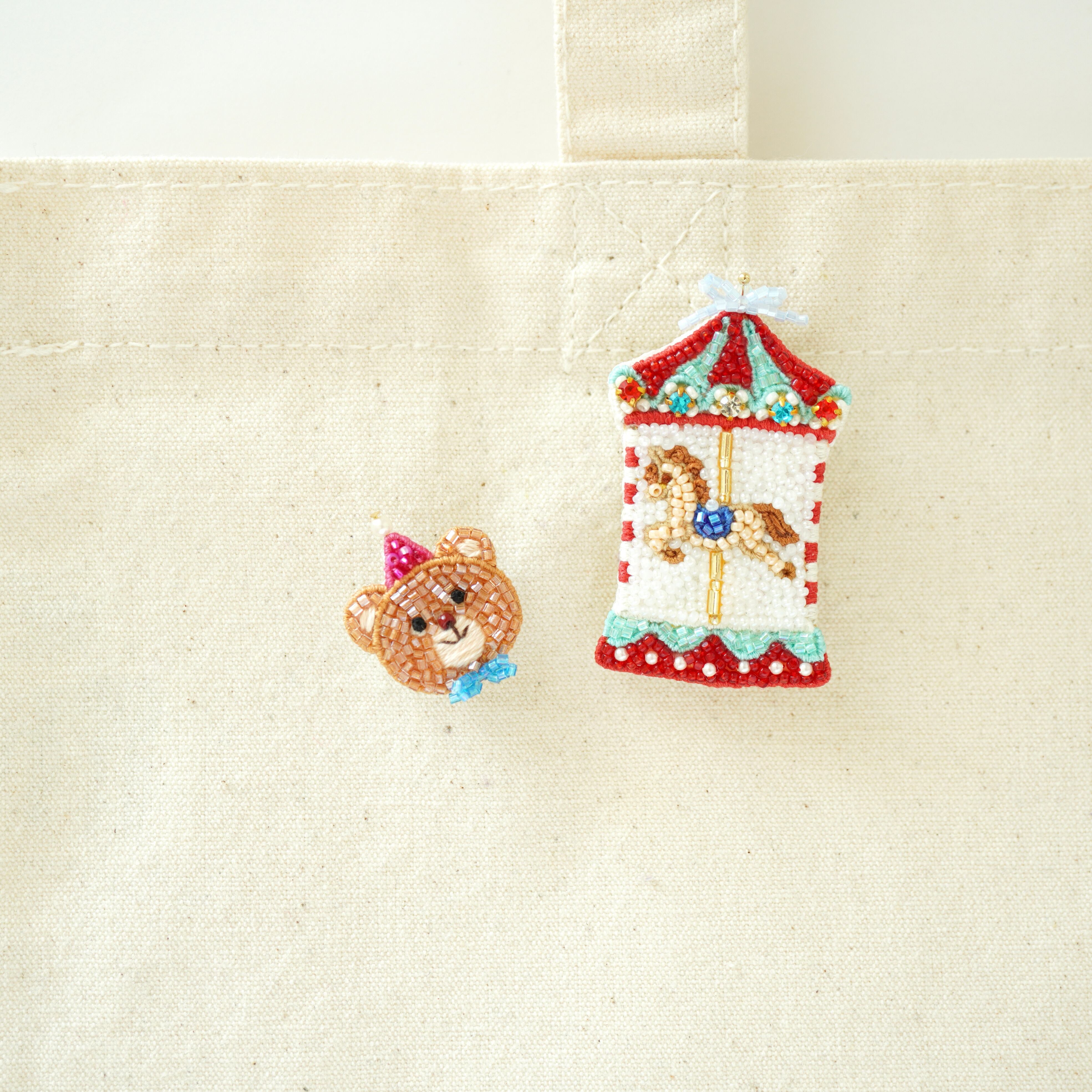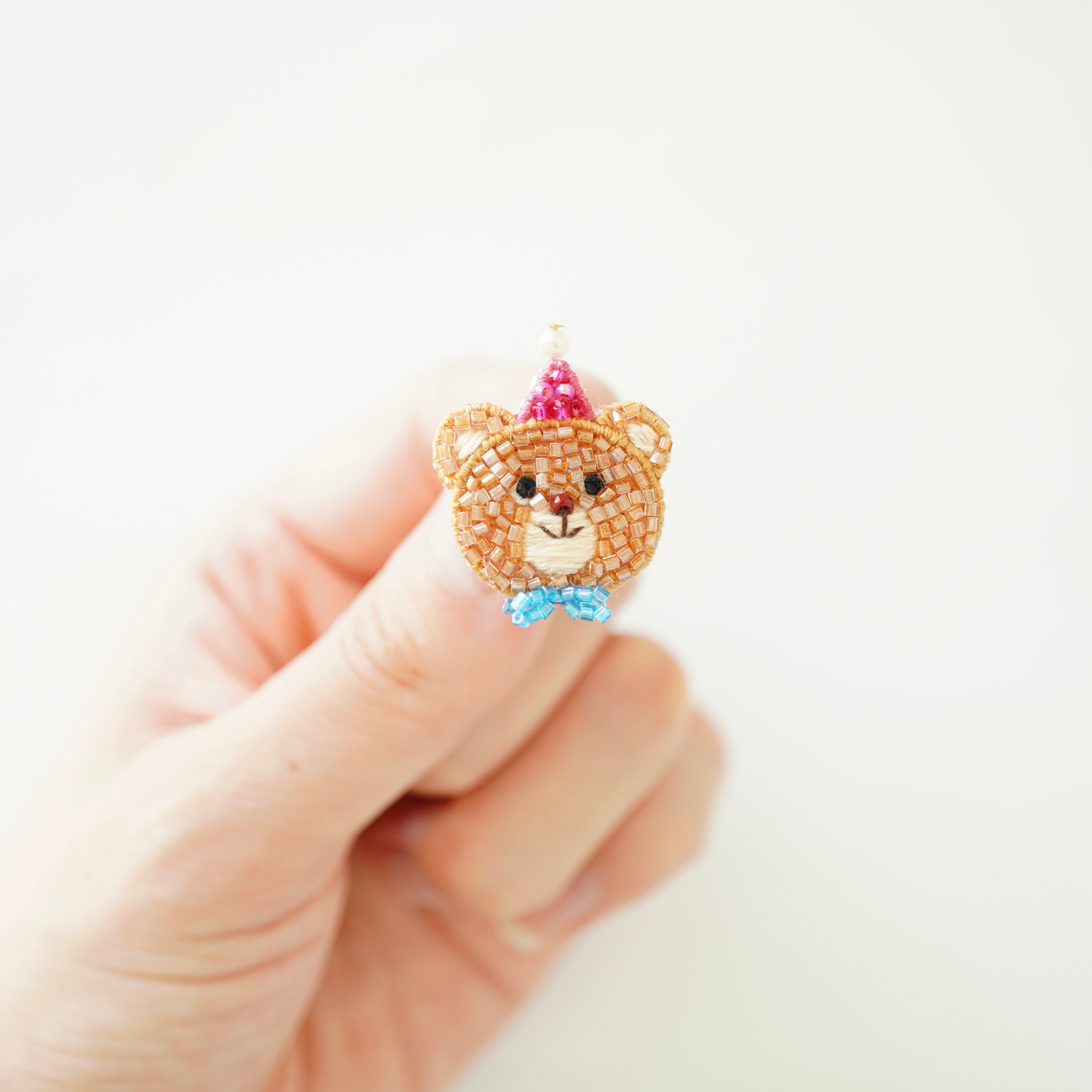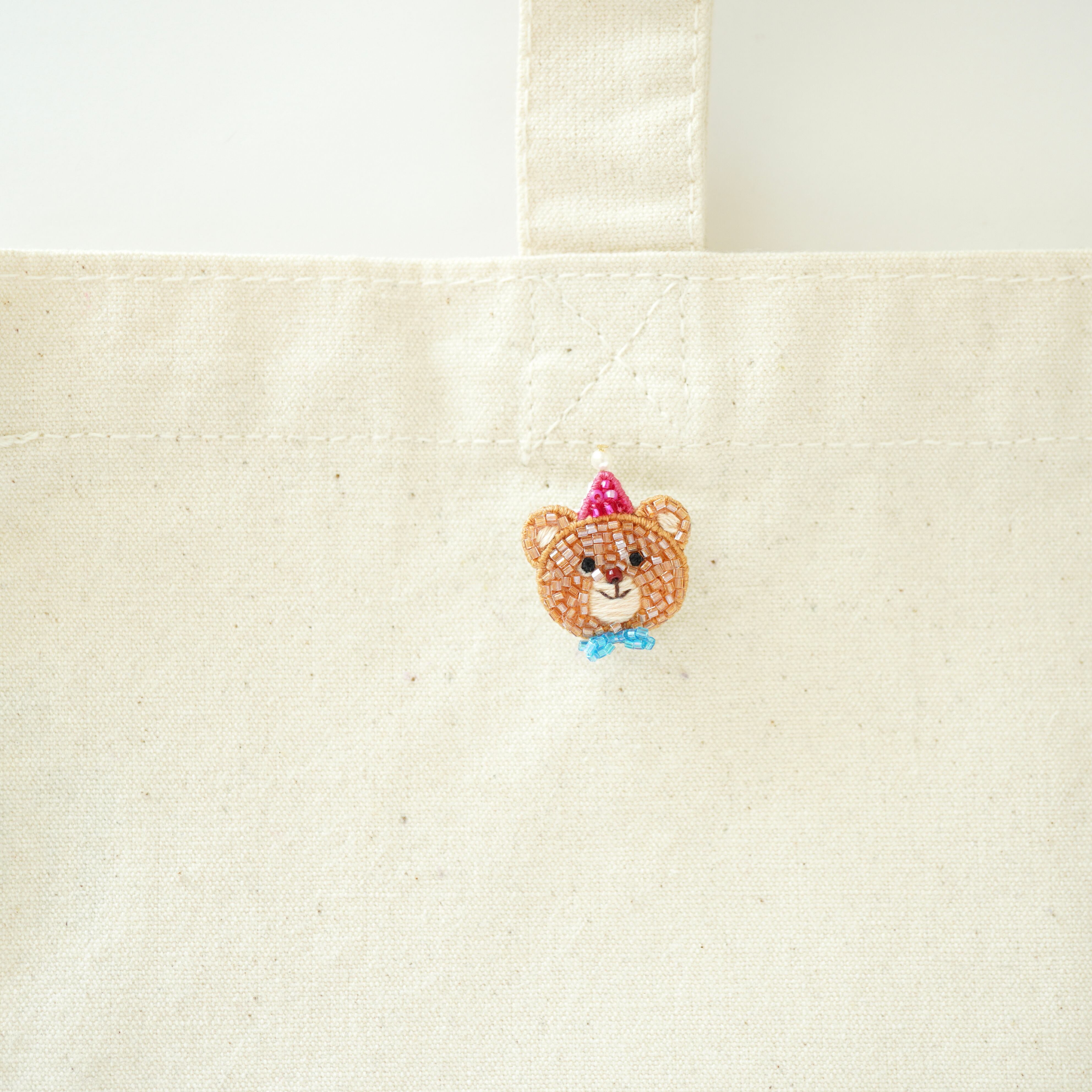 バースデーくまちゃんピンバッジ ビーズ刺繍ブローチ