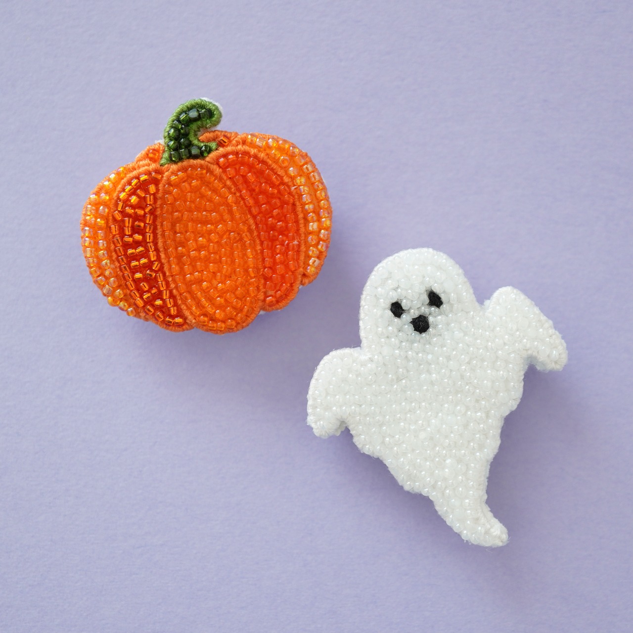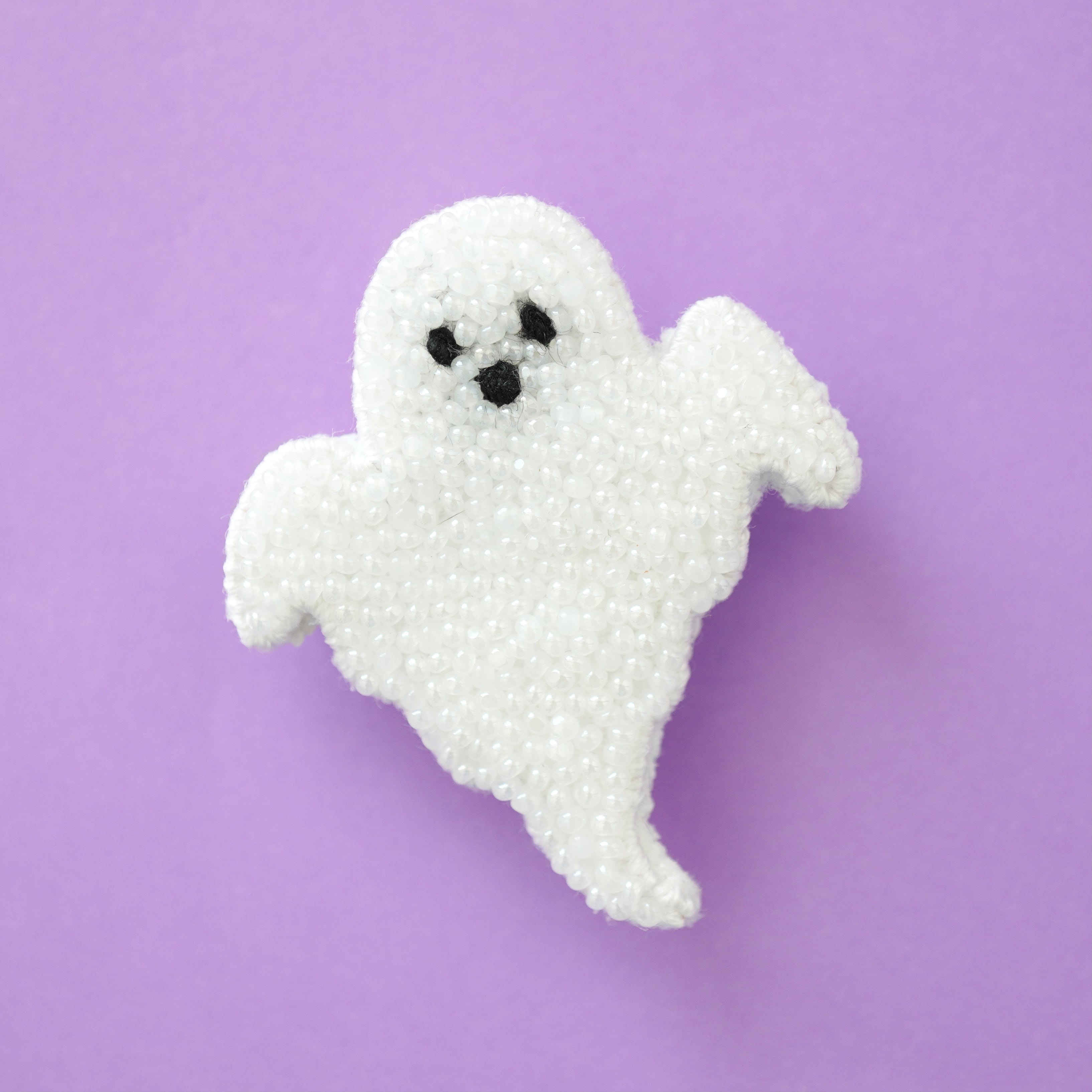 チェコガラスの白いシャーロットビーズを全体に刺繍しています。