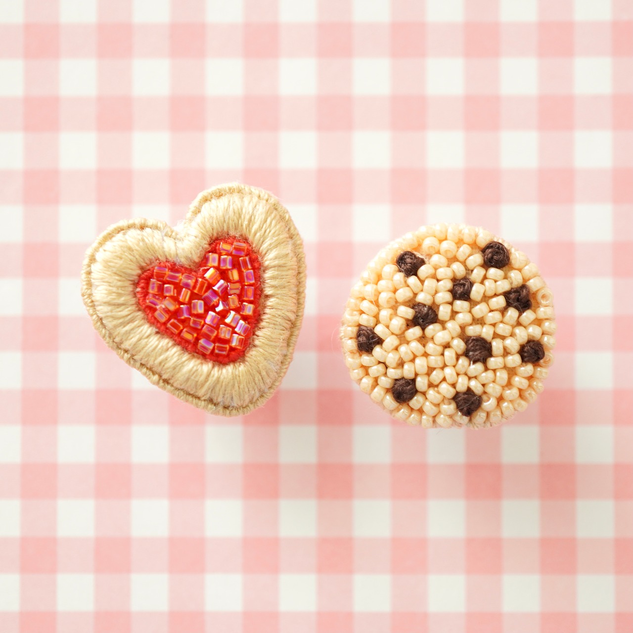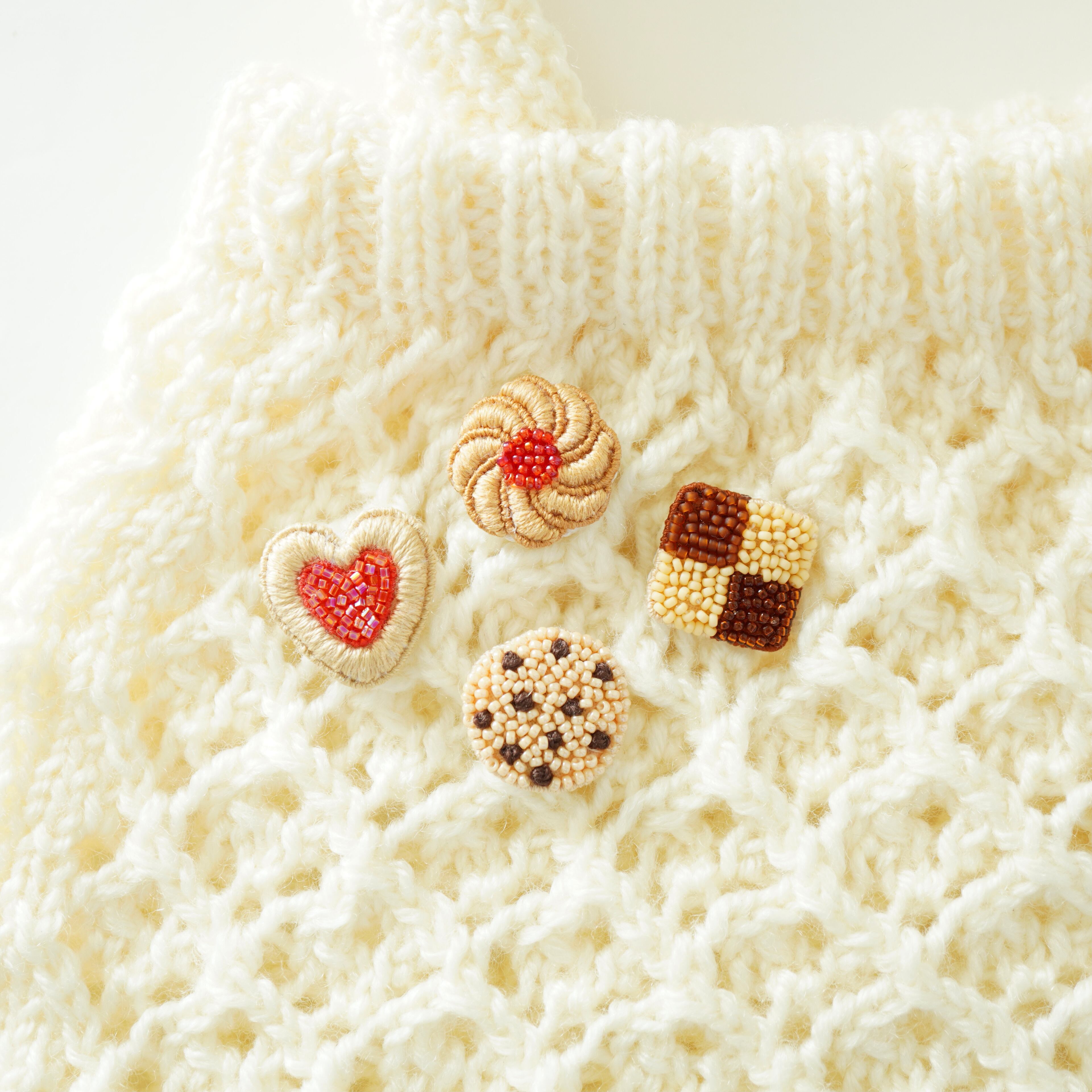 ビーズ刺繍で制作した小さくて可愛いクッキーのピンバッジを詰め込んだアソート缶のようなセットです。