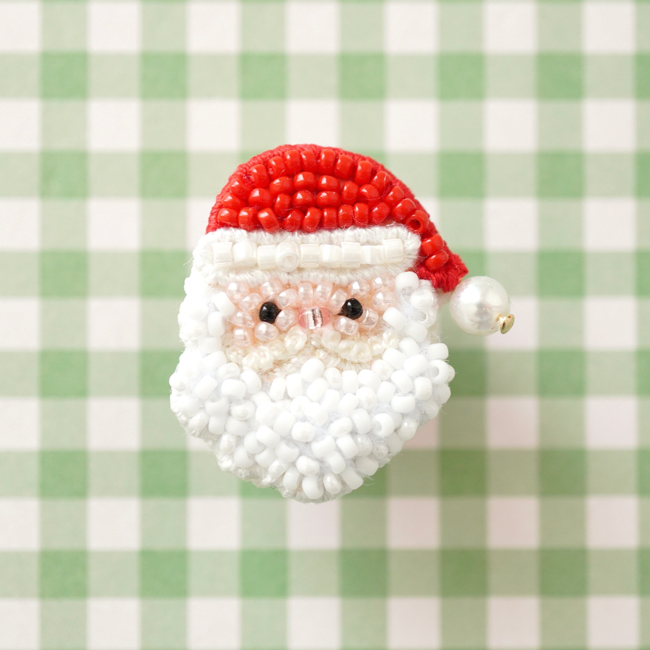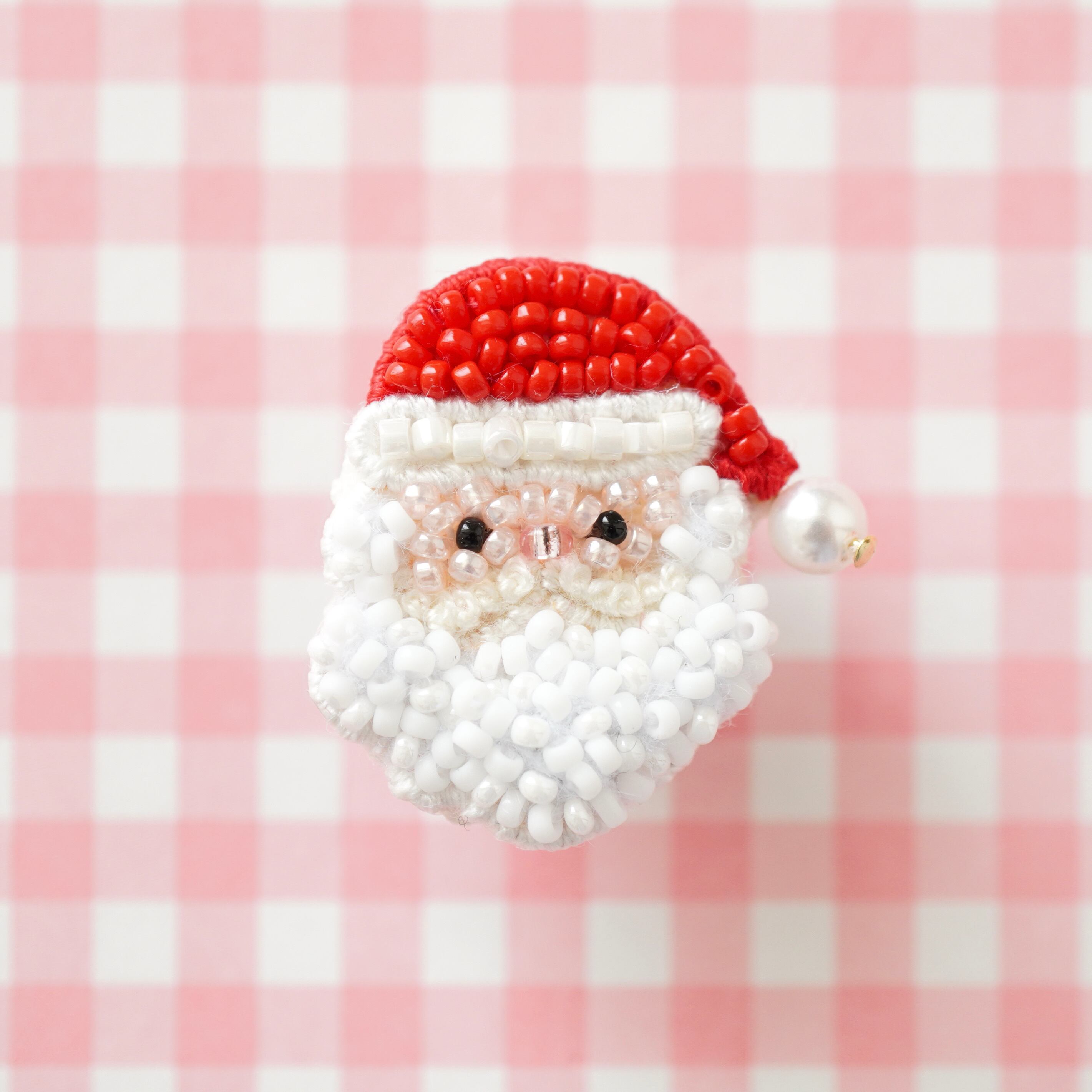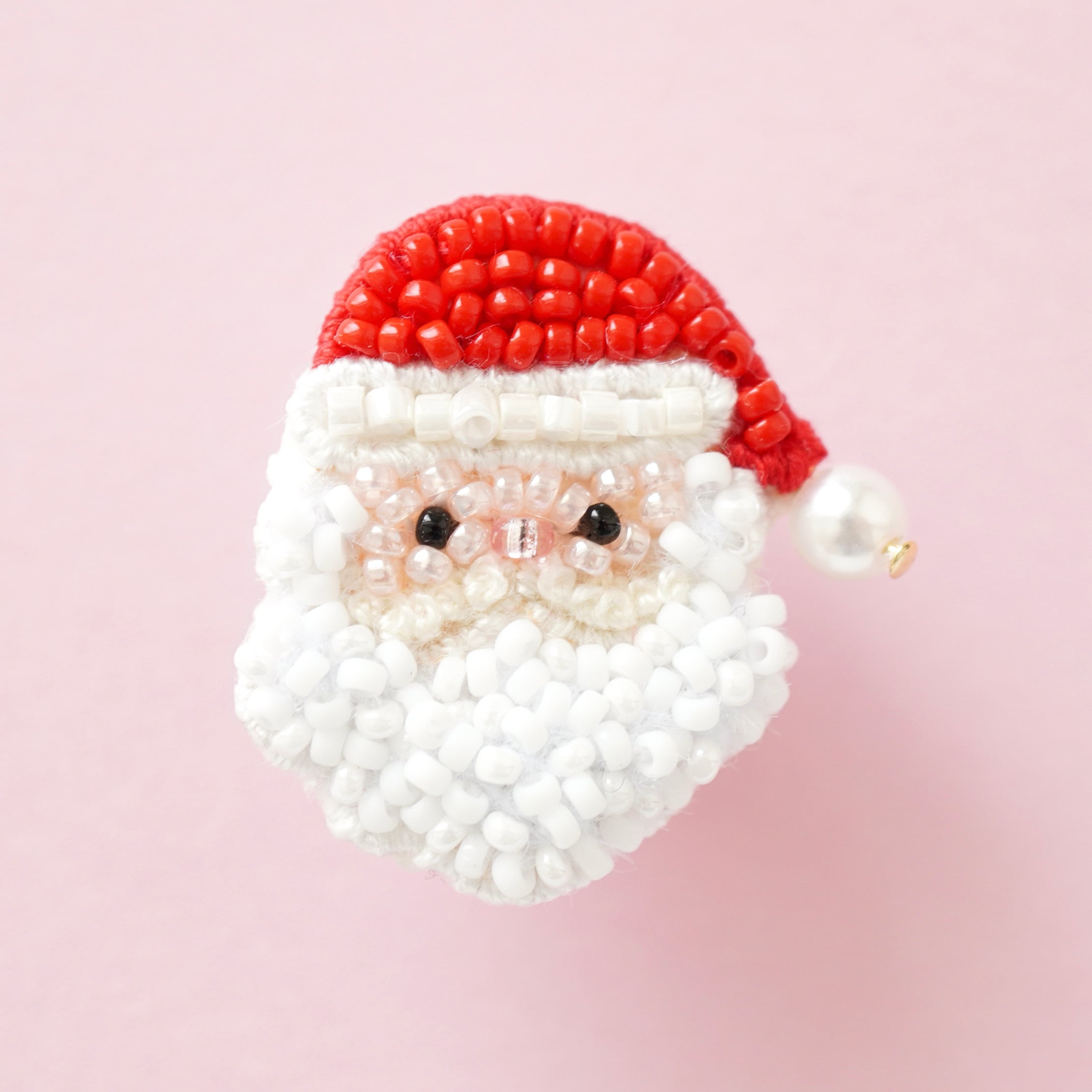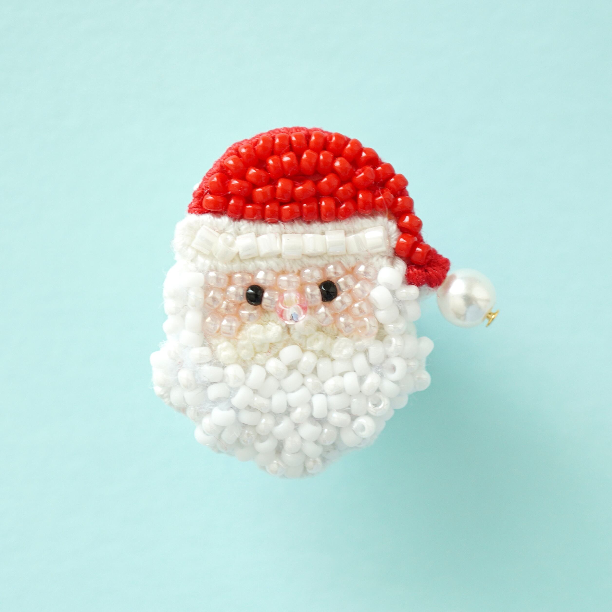 もこもこの白いお髭が可愛いサンタさんのピンバッジです。