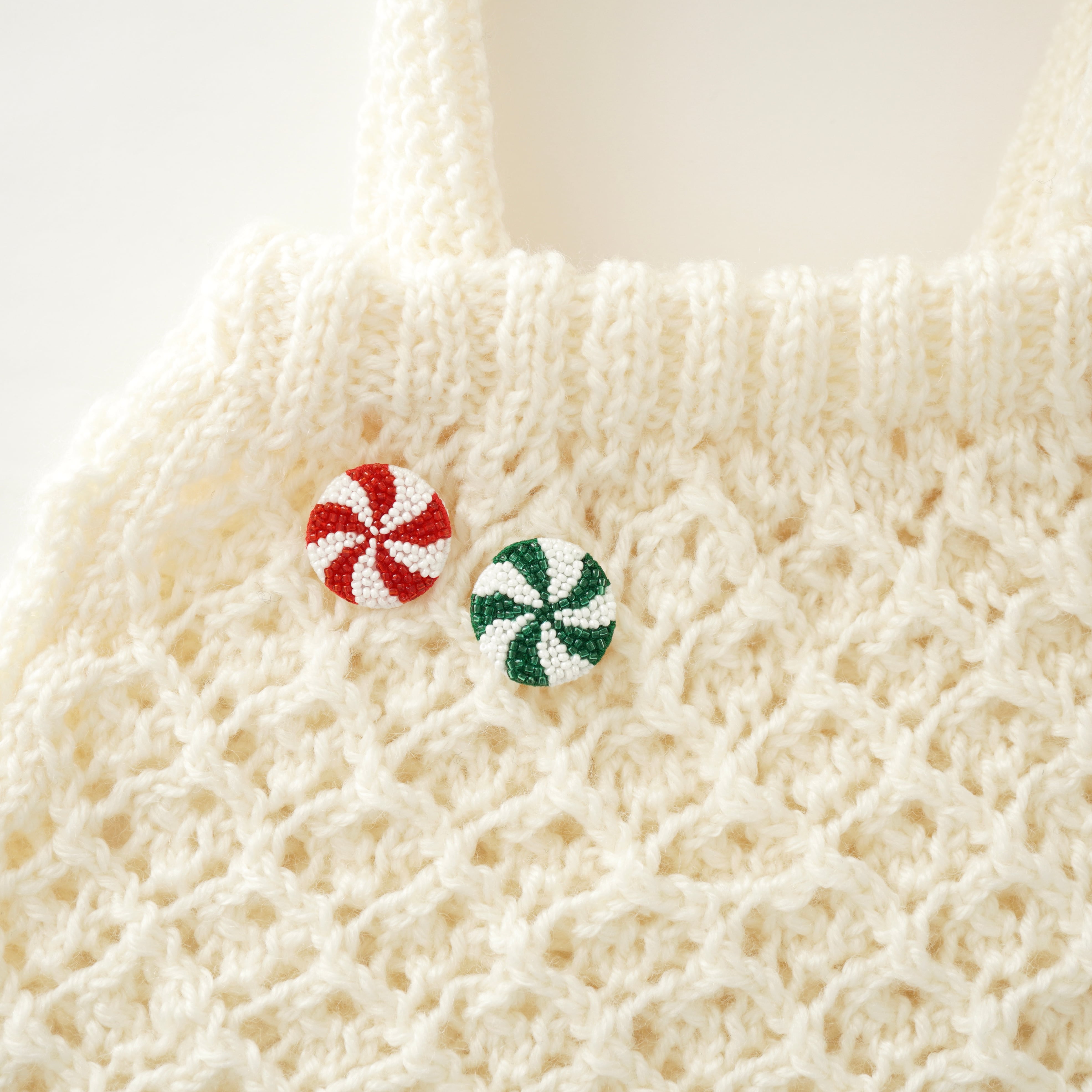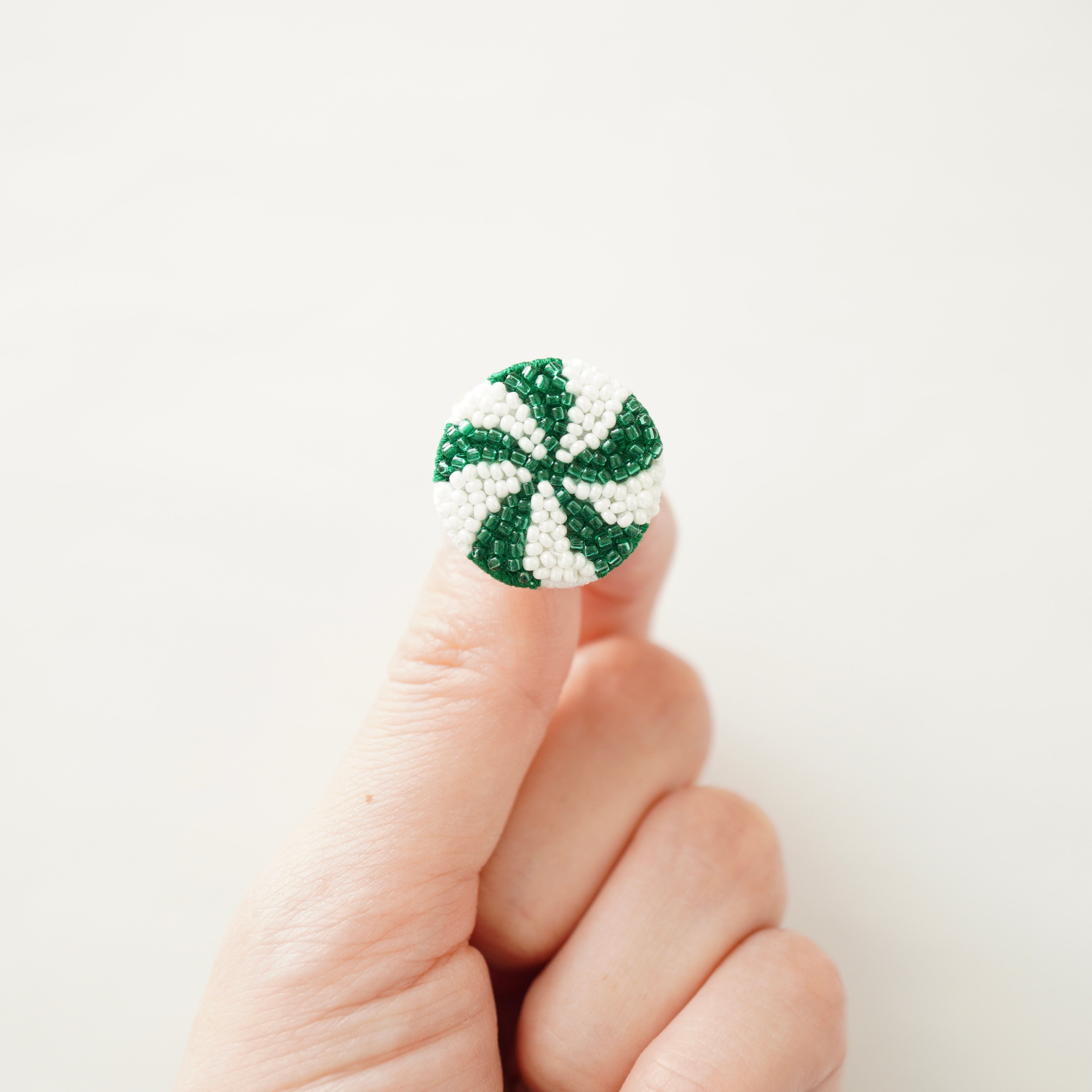 ビーズ刺繍で制作したペパーミントキャンディのピンバッジの2個セットです。