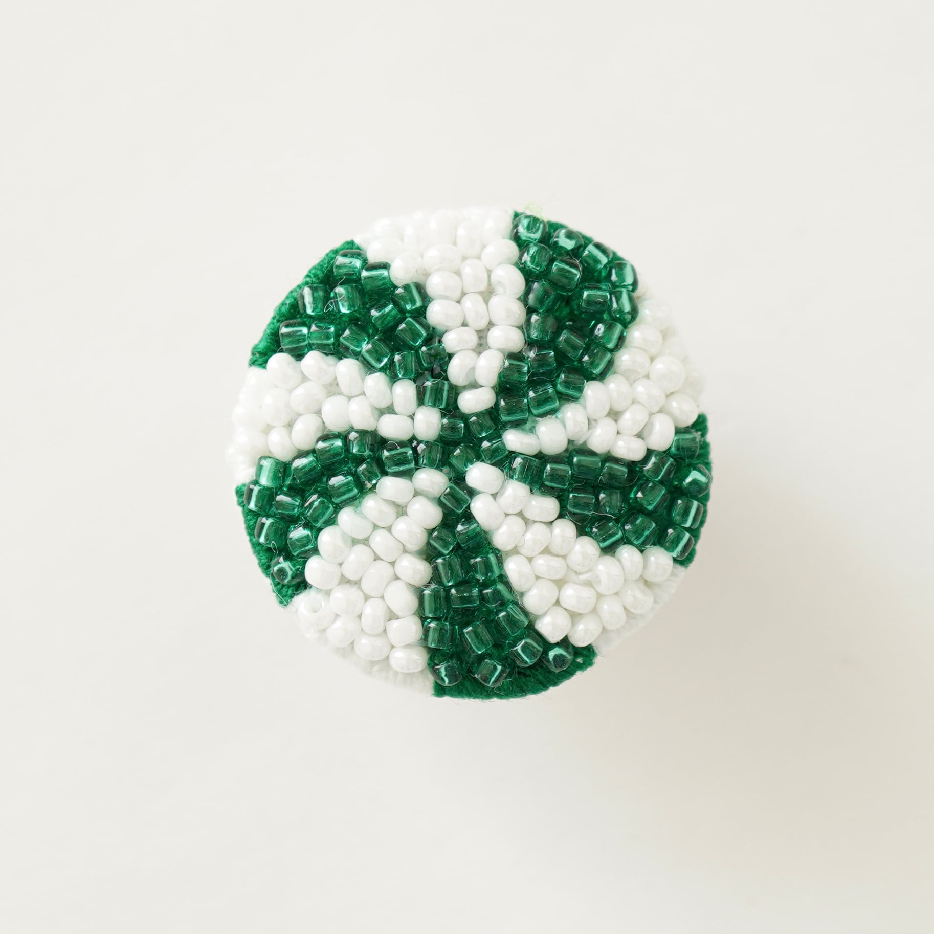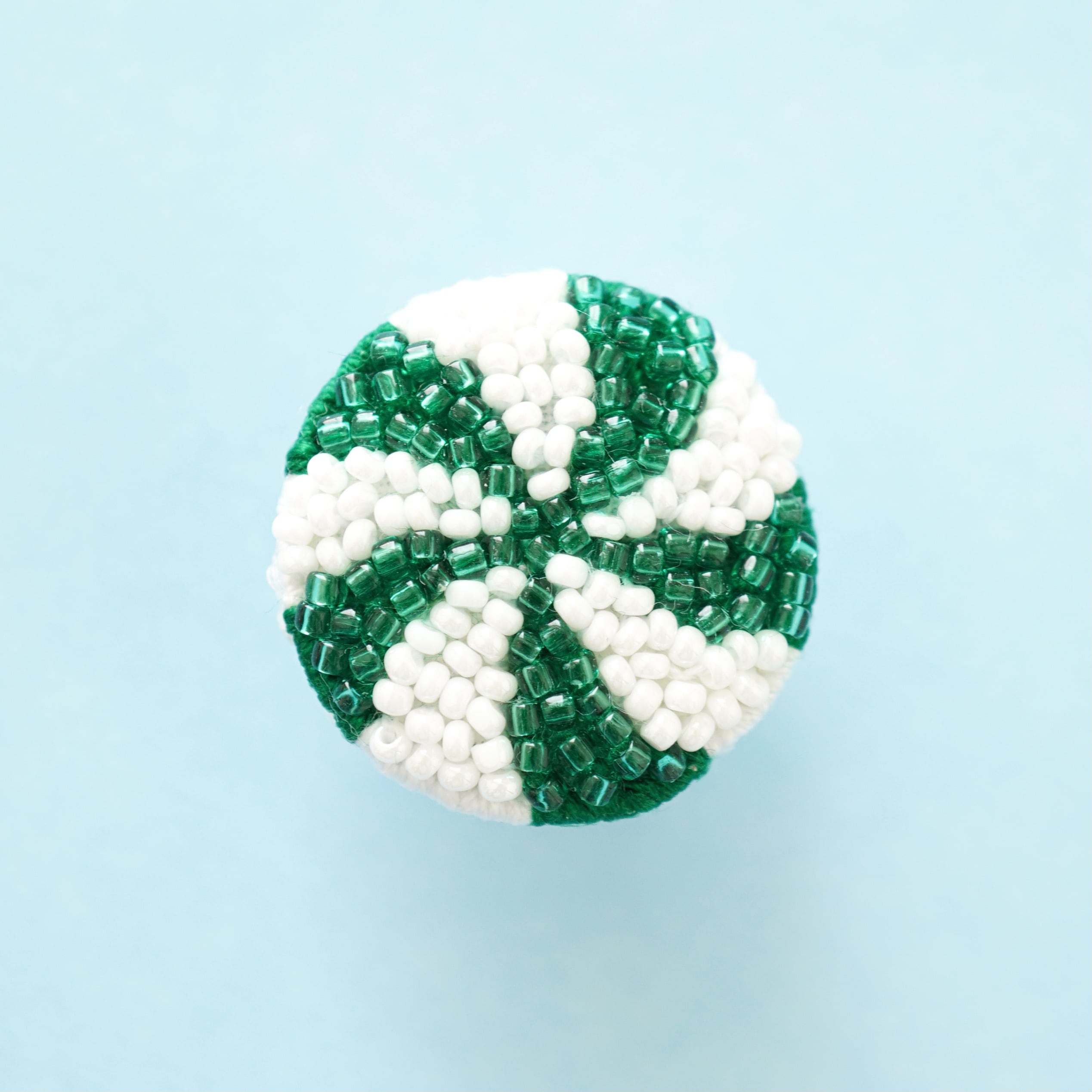 ビーズ刺繍で制作したペパーミントキャンディのピンバッジです。