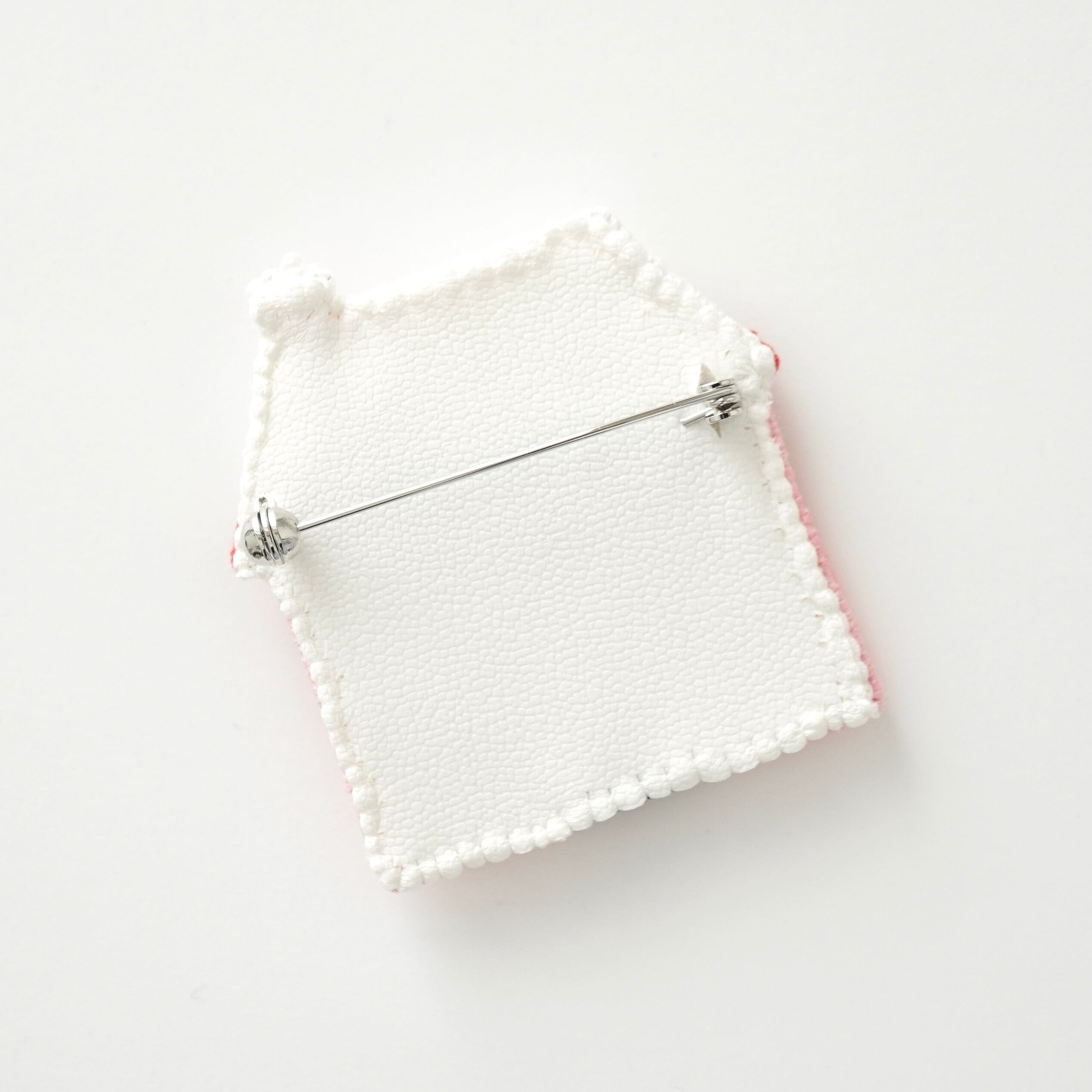 クリスマスのお家のブローチ(ピンク) ビーズ刺繍ブローチ
