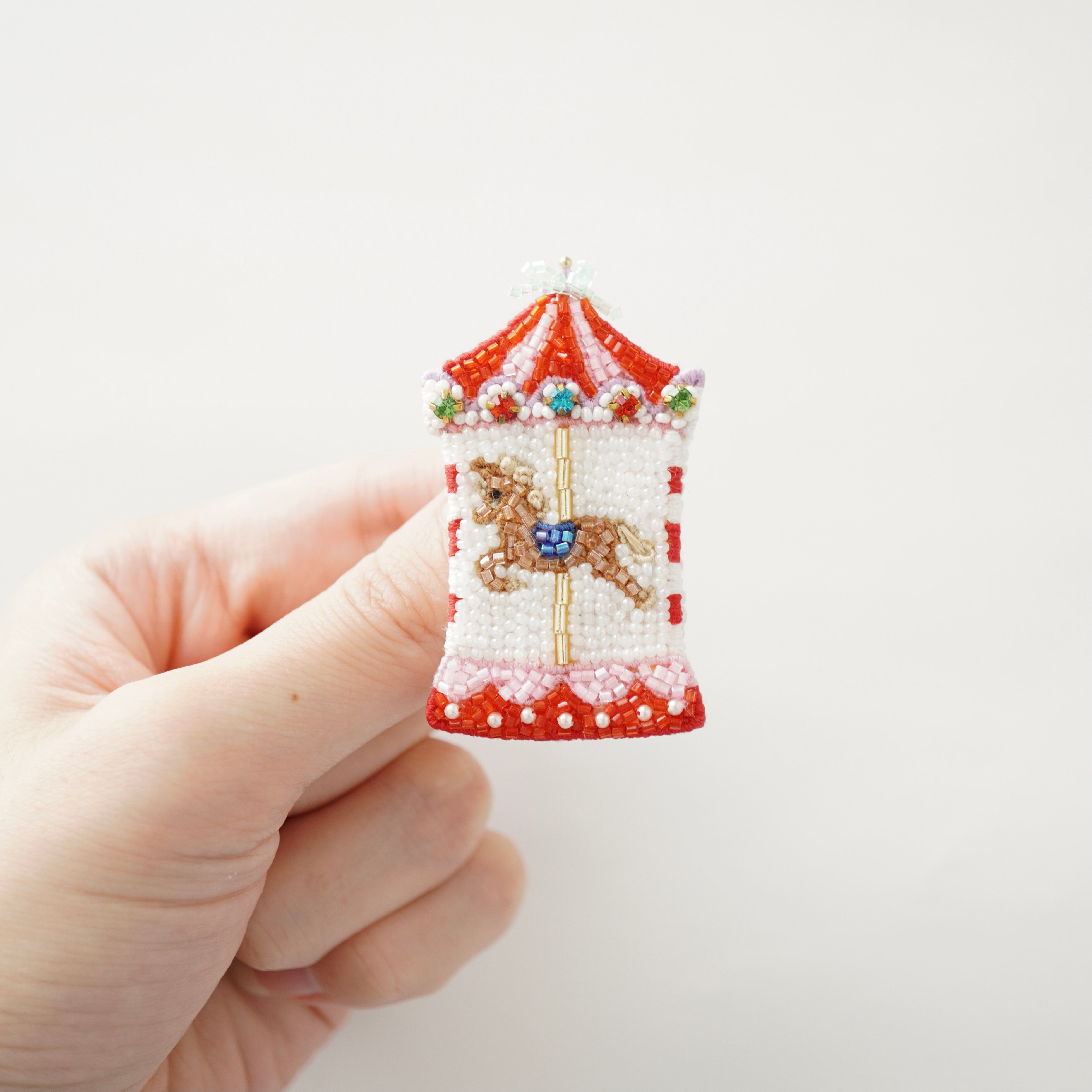 ビーズ刺繍で制作したメリーゴーランドのブローチです。