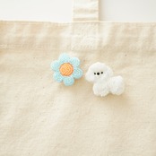 ビーズ刺繍で制作した白い犬のブローチとお花のブローチの2点セットです。