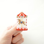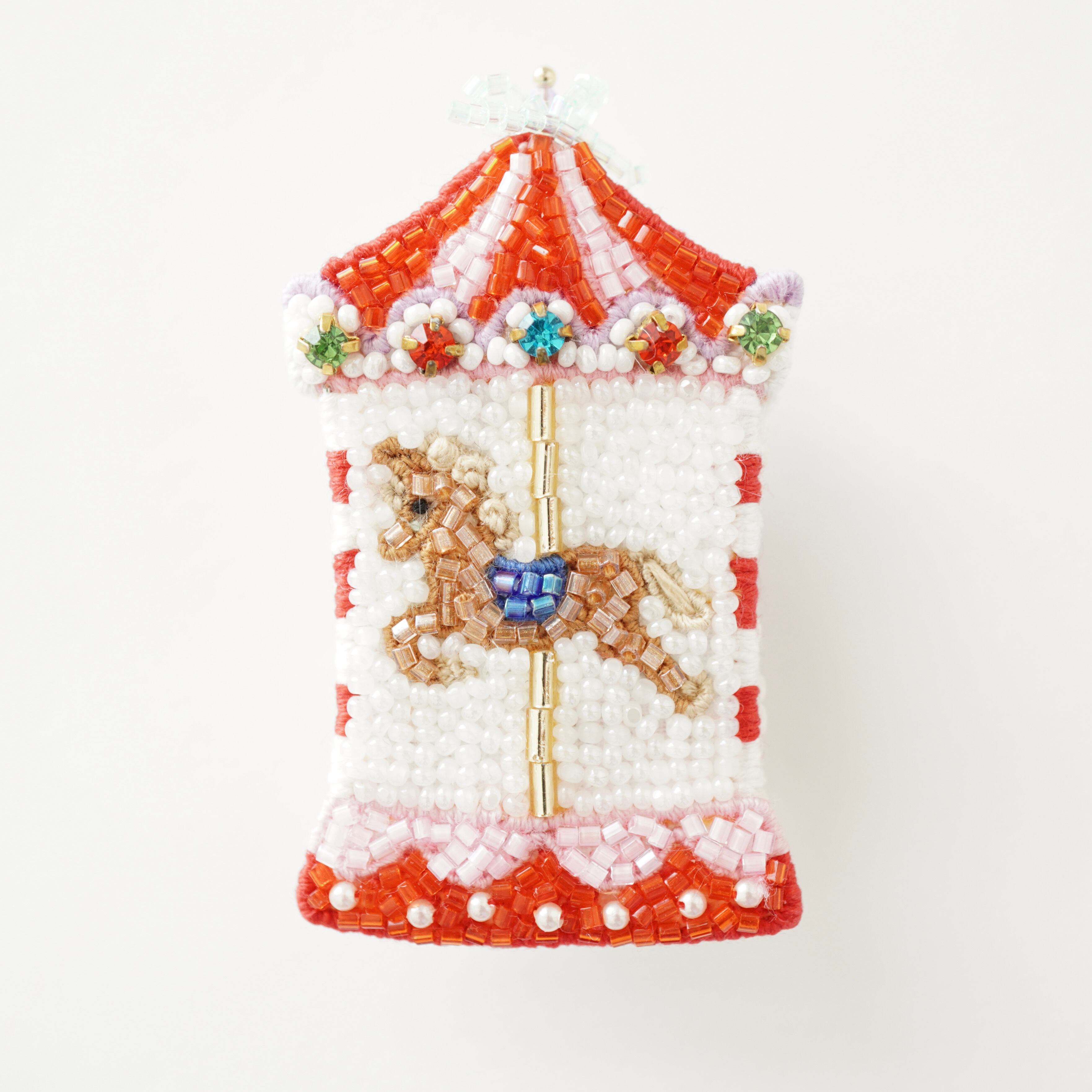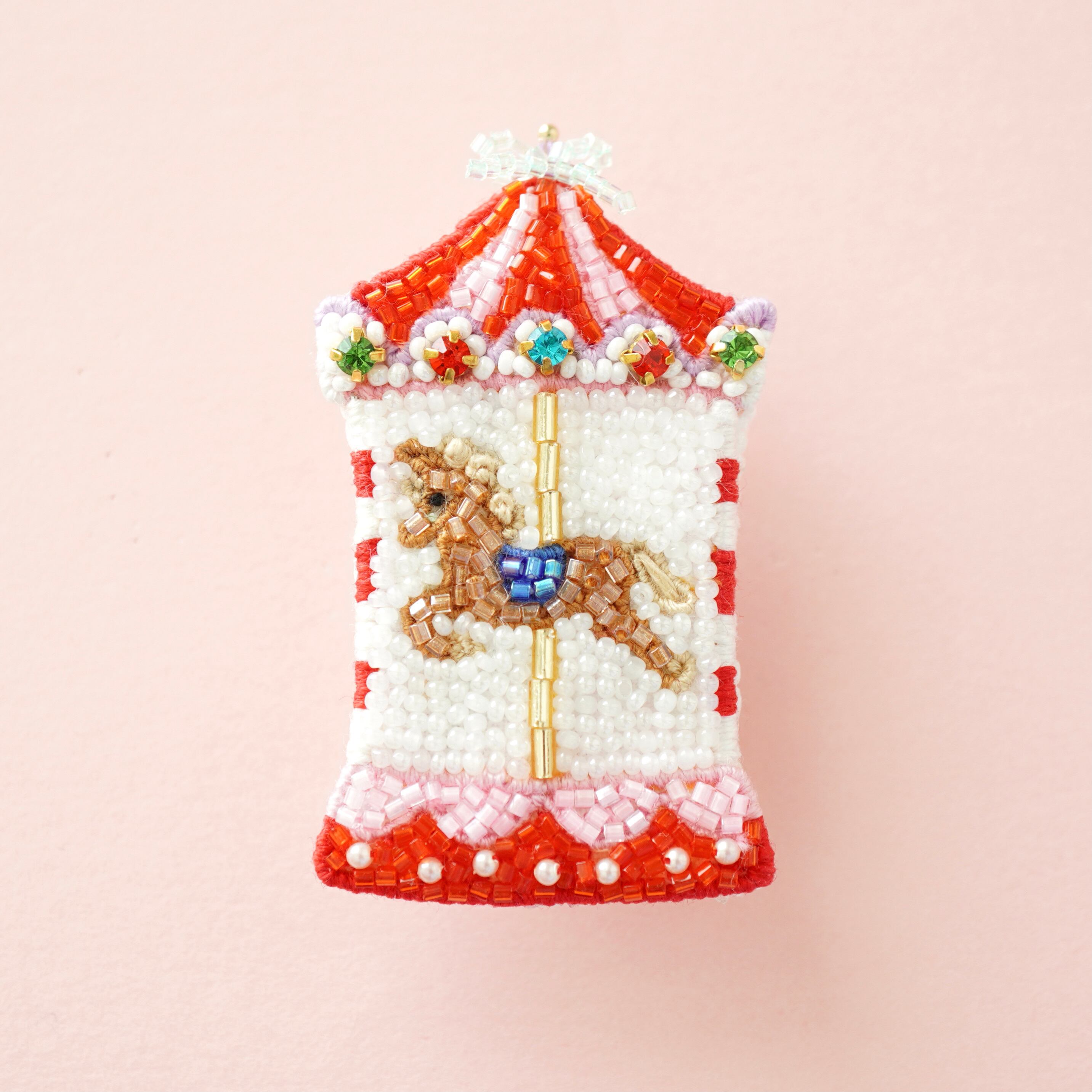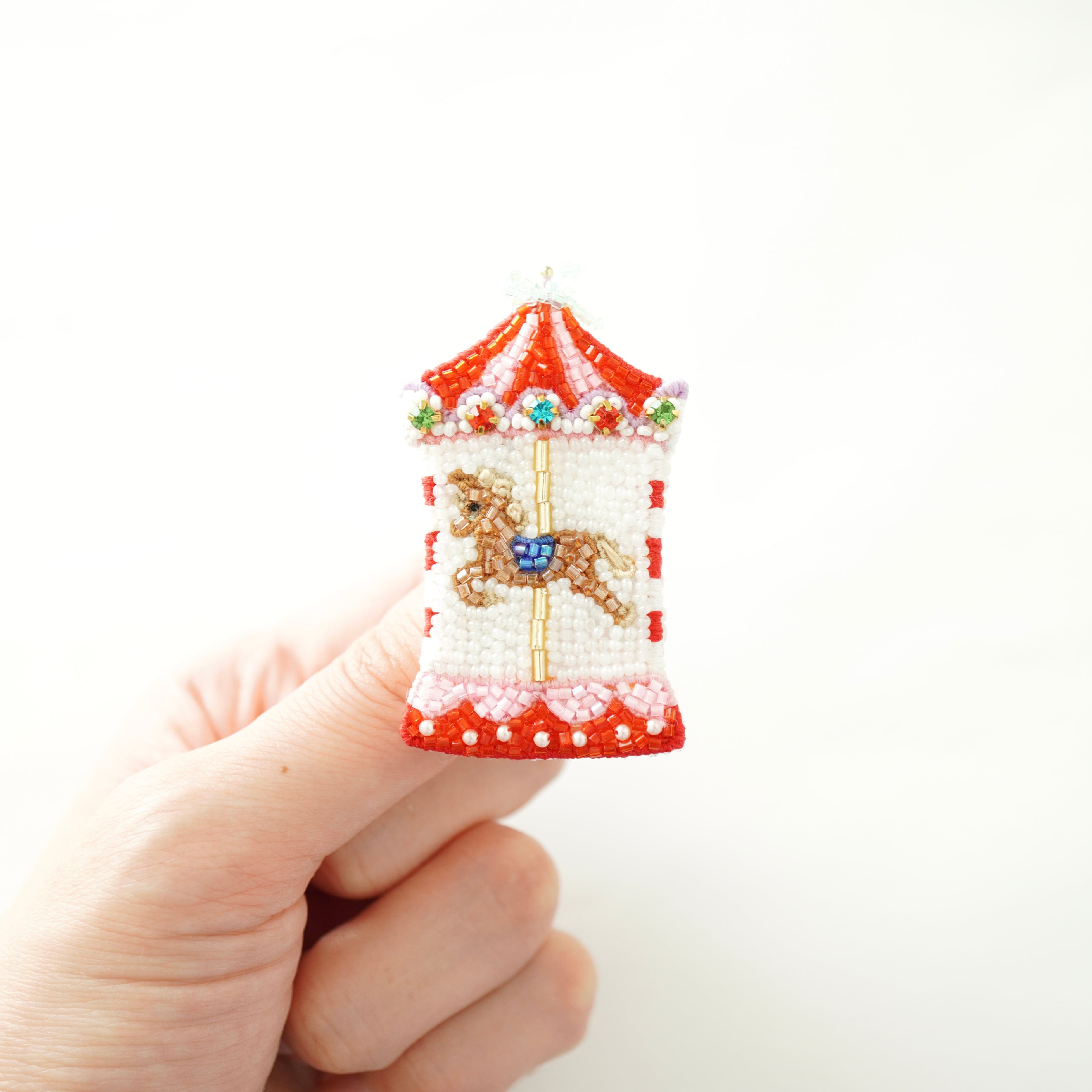 ビーズ刺繍で制作したメリーゴーランドのブローチです。