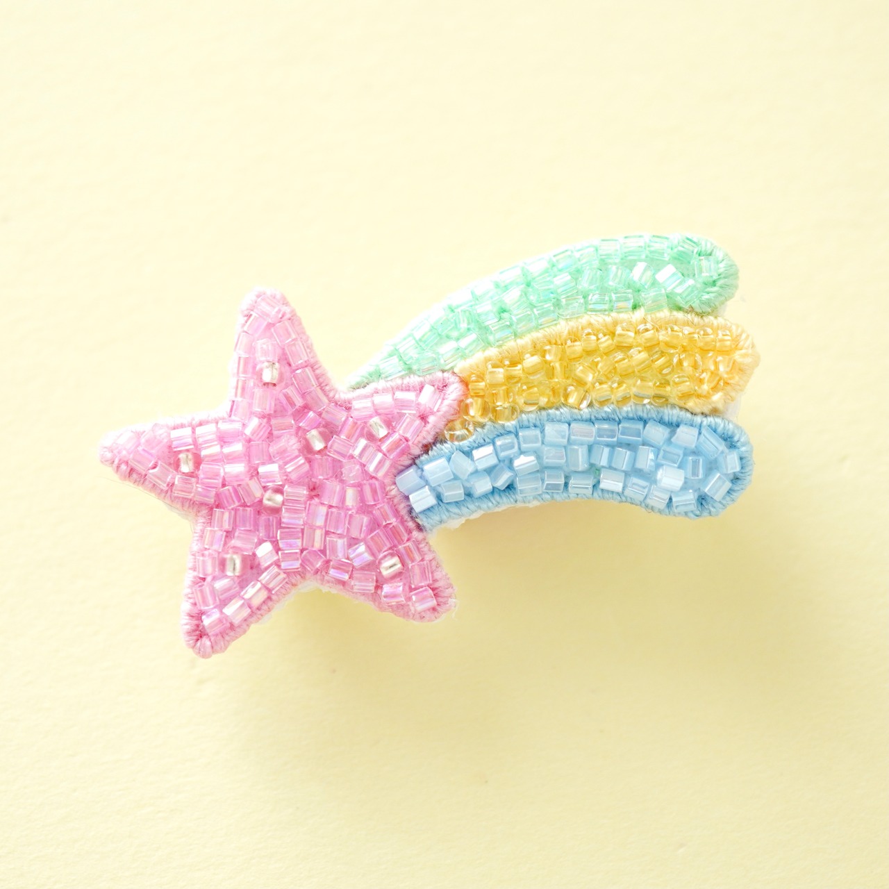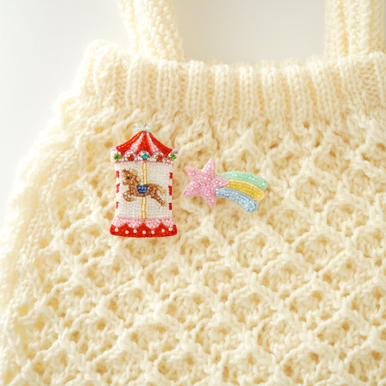 \HAPPY BAG/ビーズ刺繍ブローチ2個セット メリーゴーランドのブローチ・流れ星のブローチ