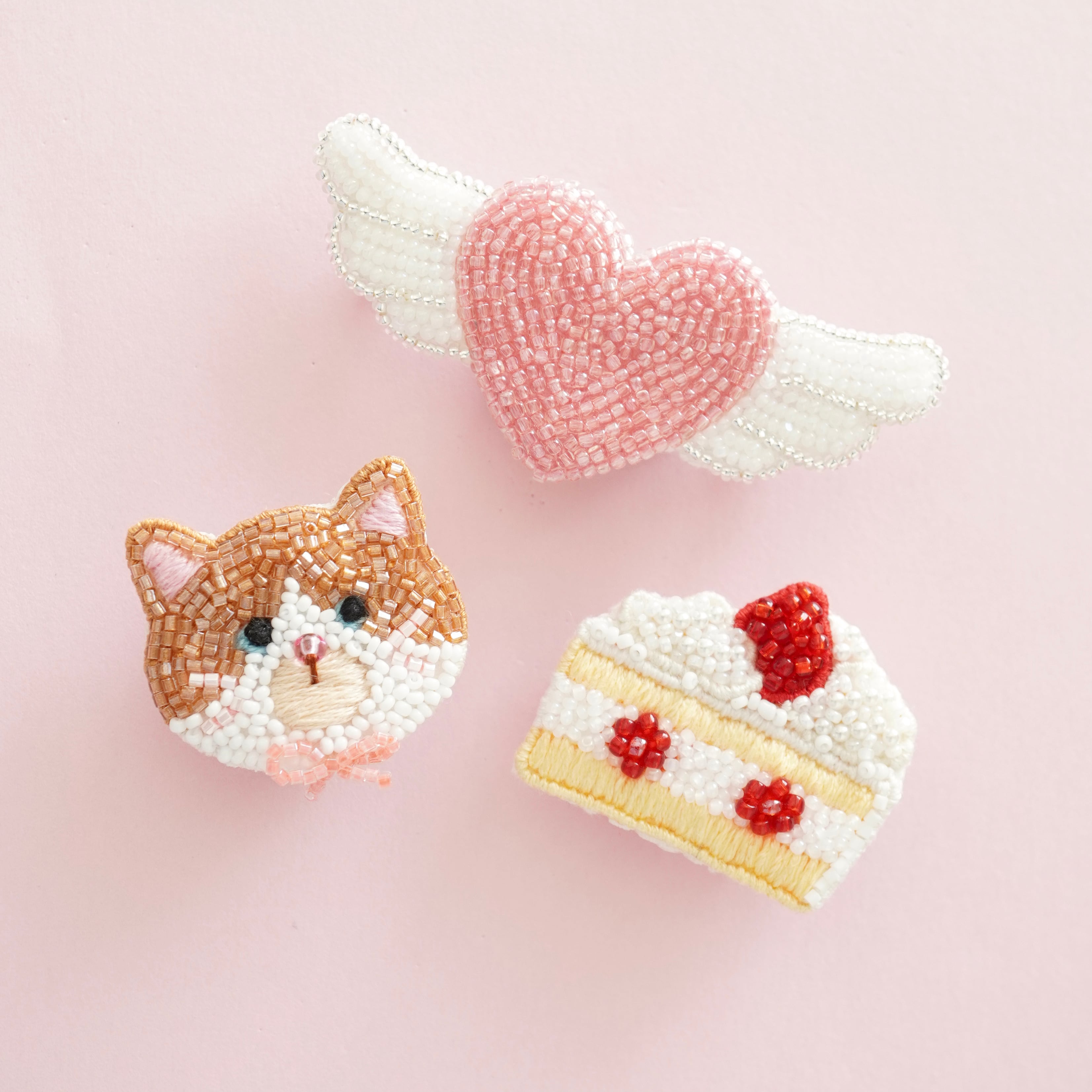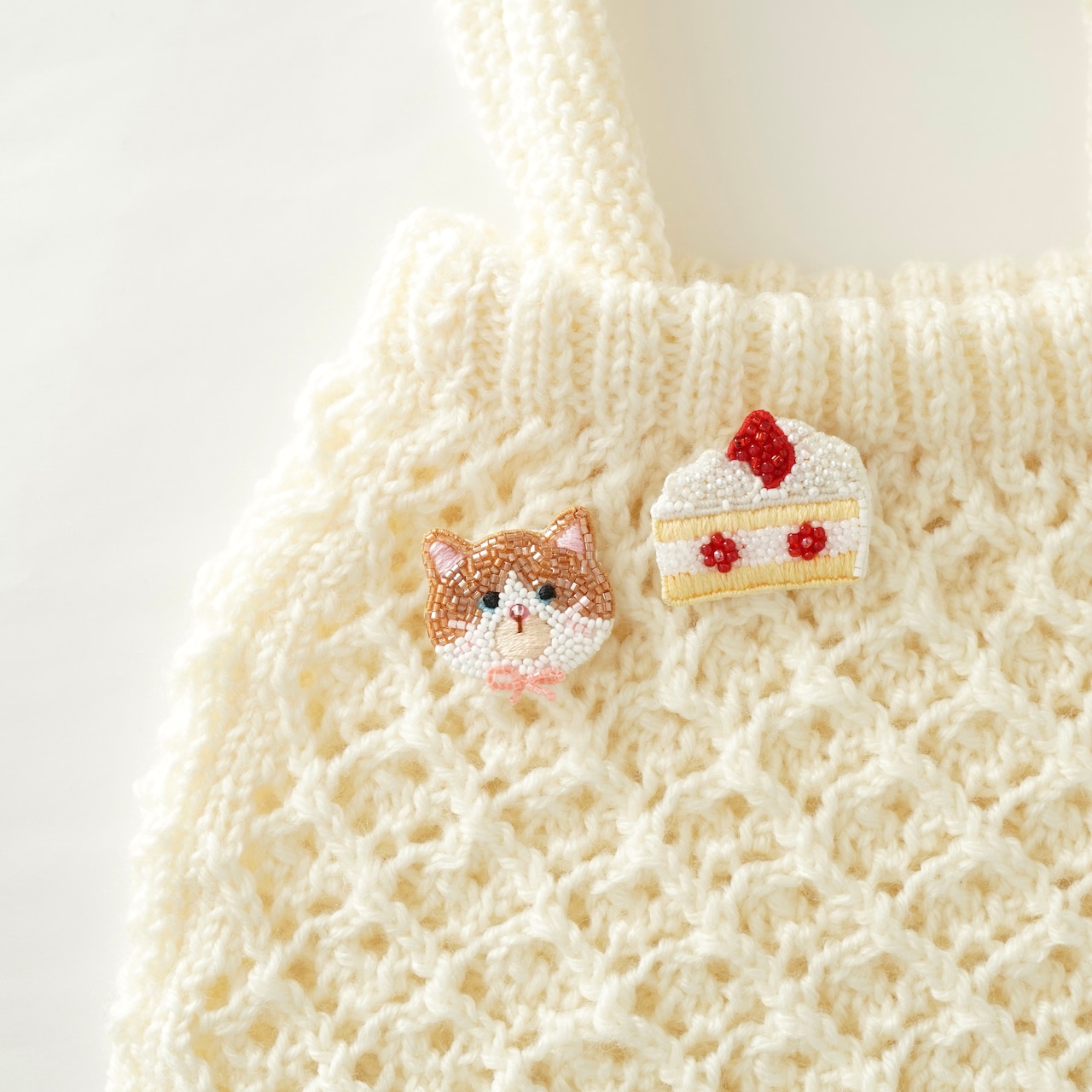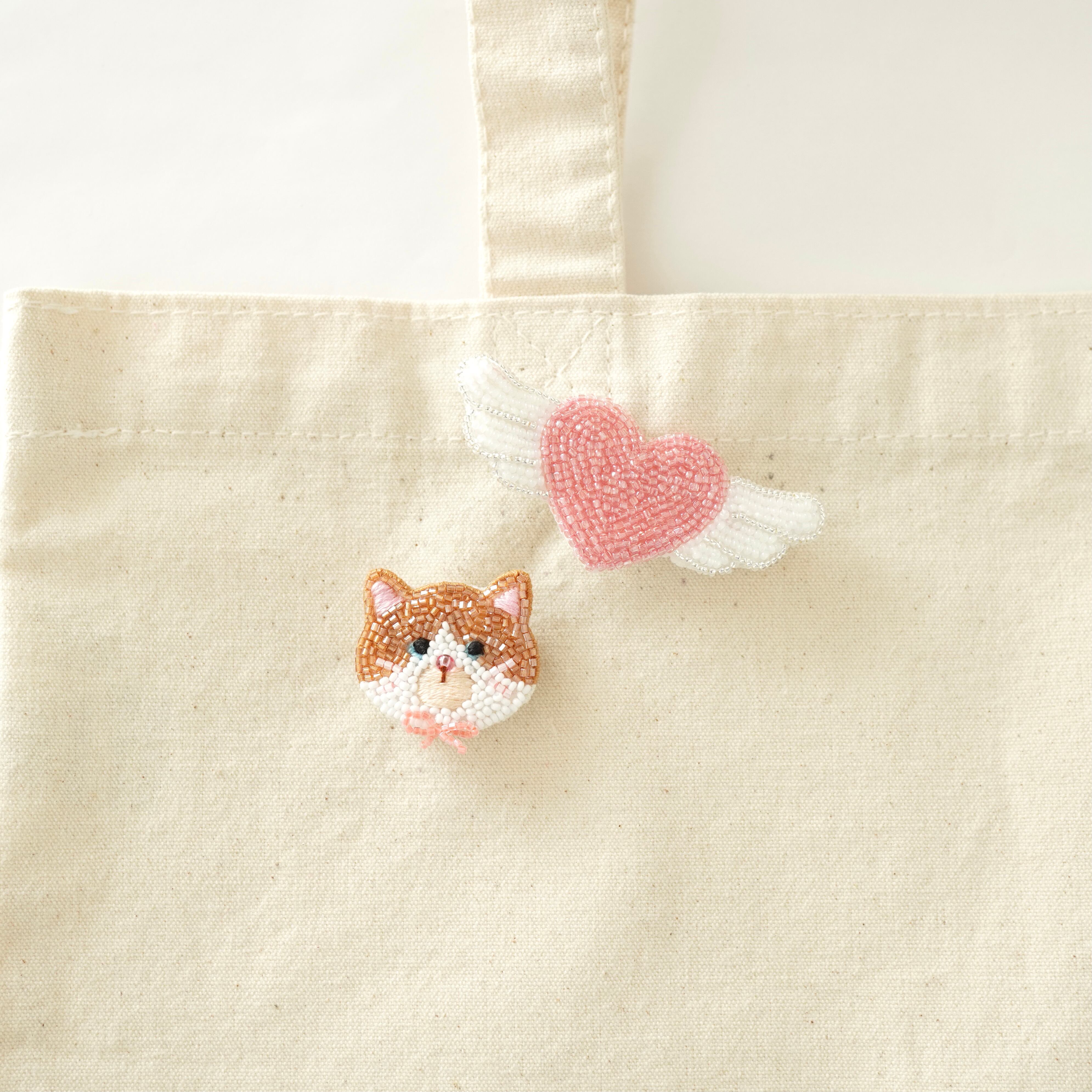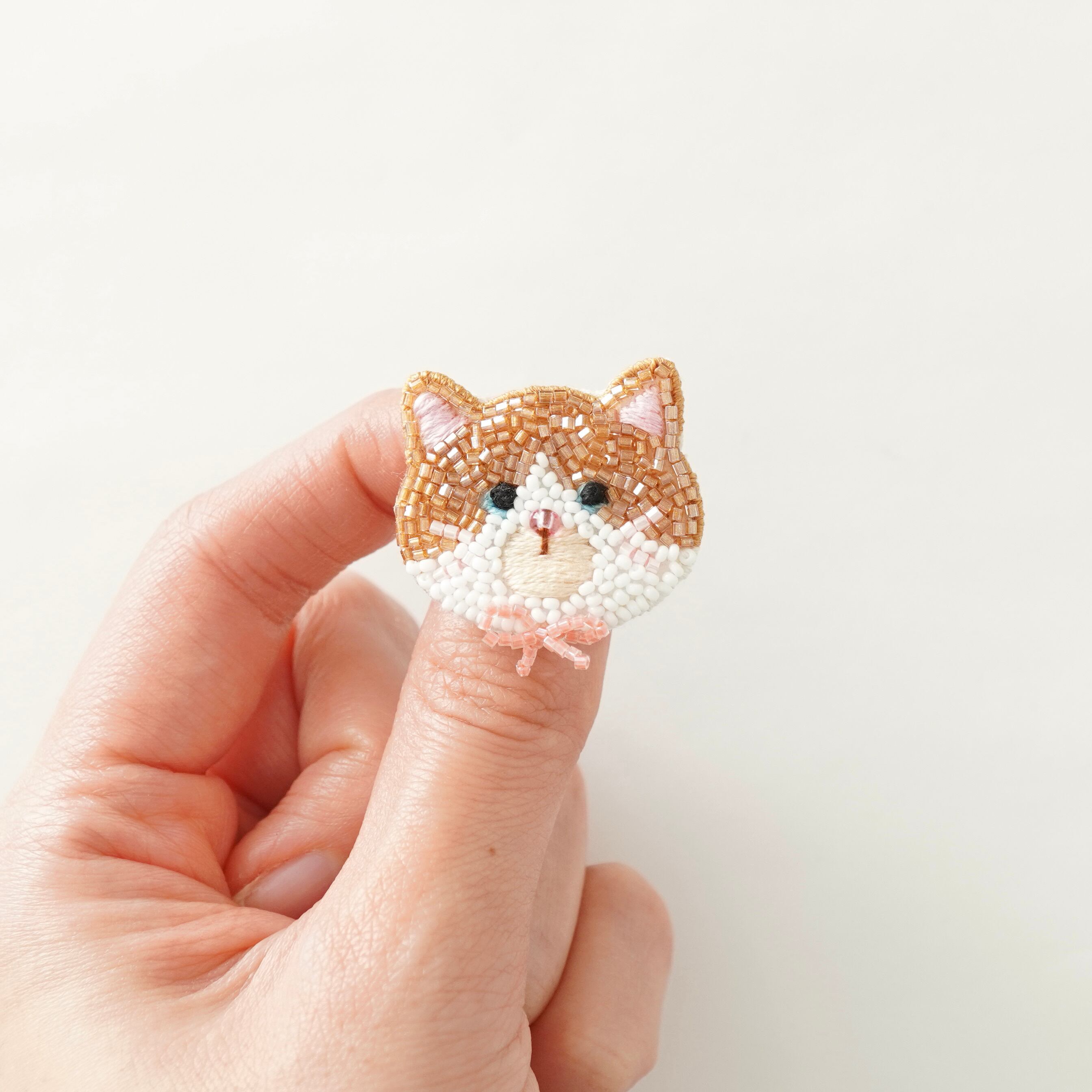 ビーズ刺繍で制作した猫ちゃんピンバッジです。
