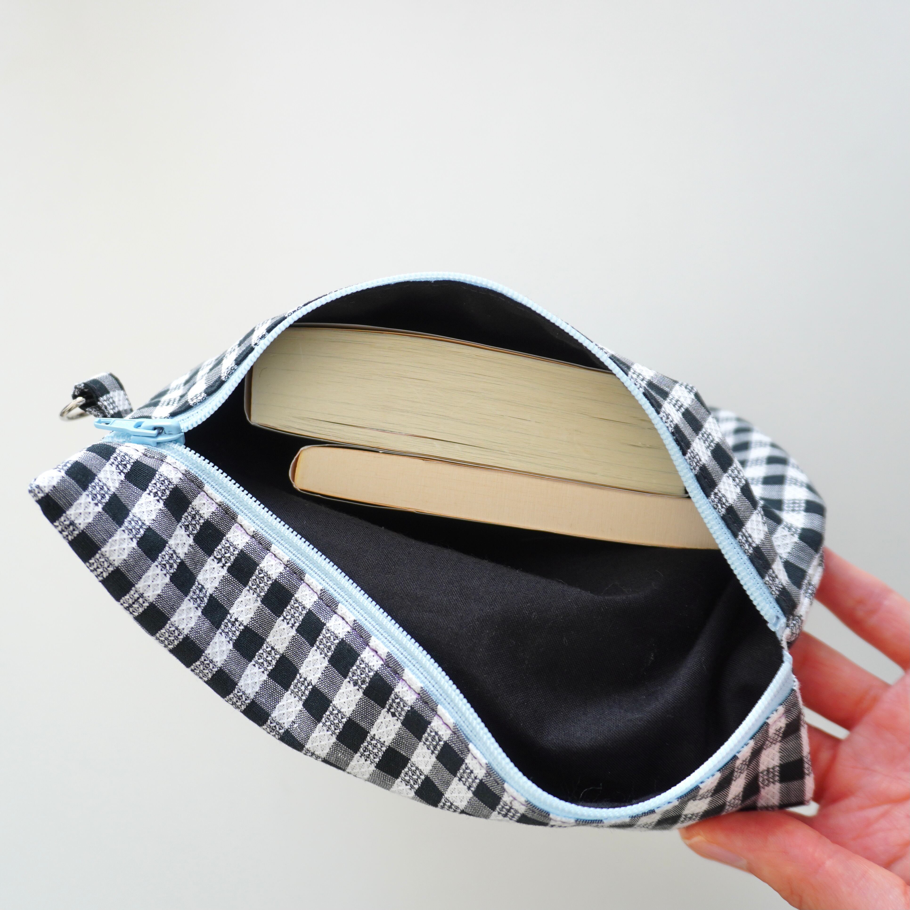 マチはありませんが、文庫本であれば2~3冊入るので、本を持ち歩くブックポーチにもぴったりです。