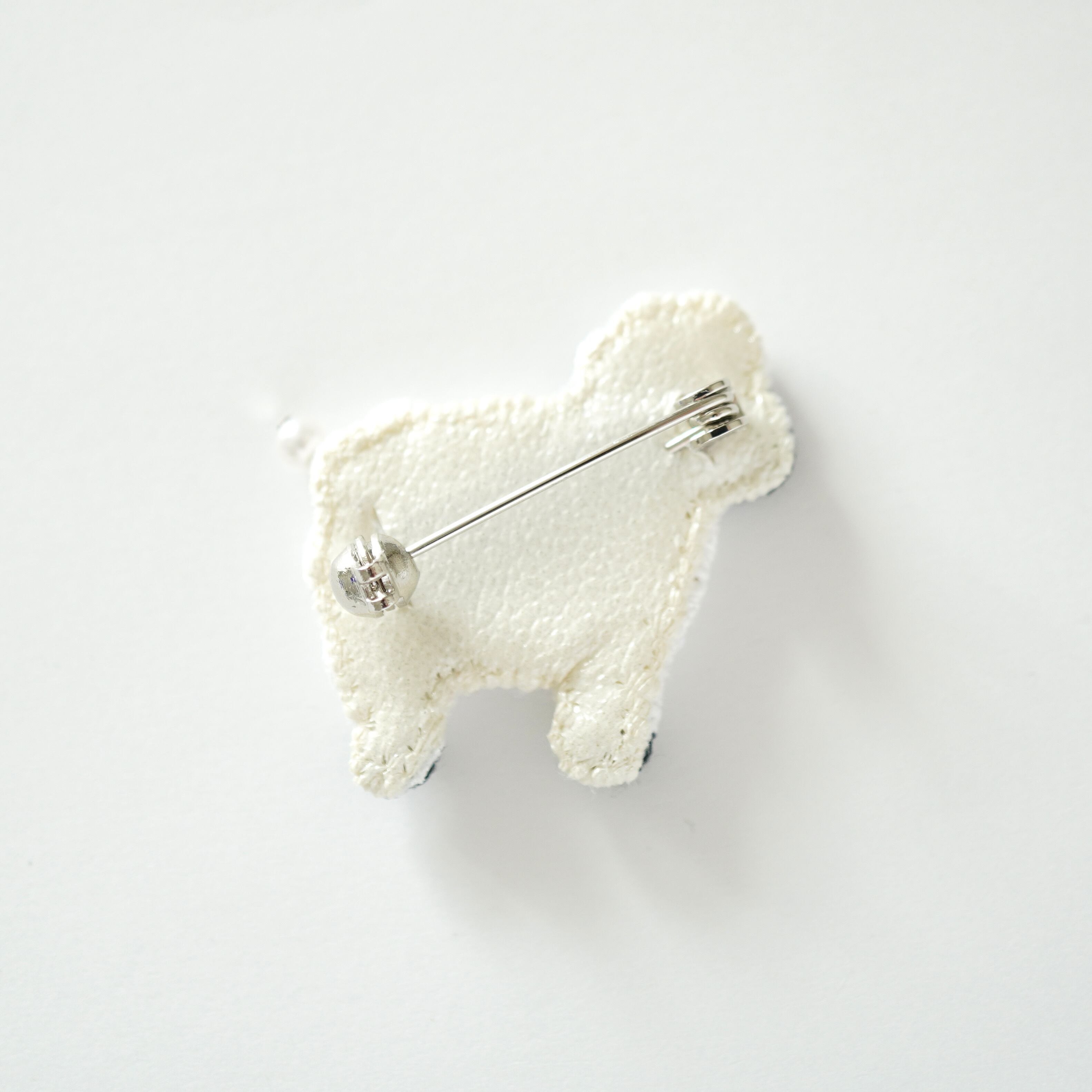 様々な質感の白色のビーズを刺繍して羊のふわふわとした質感を表現しました。